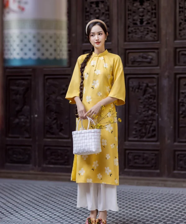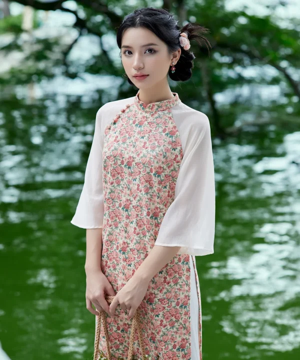 Ao Dai Elegant Midi Dress in Shiny Silk – Floral Dress Blouson