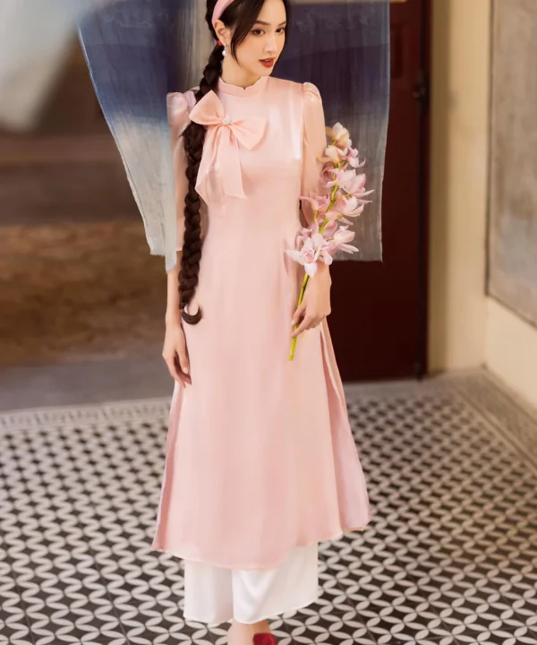 Ao Dai Hong Dao / Elegant Midi Dress in Shiny Silk