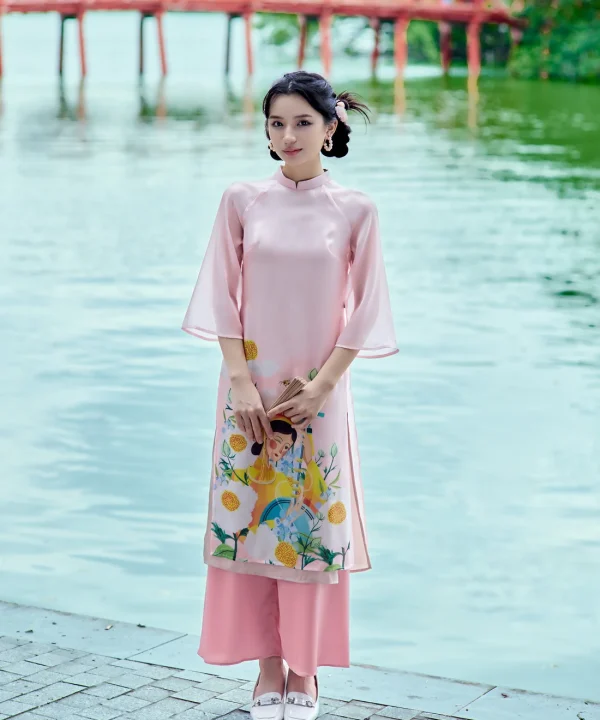 Ao Dai Da Yen (Pink) / Elegant Midi Dress in Shiny Silk