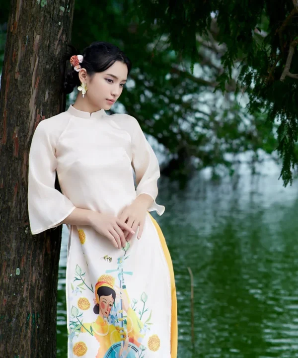 Ao Dai Da Yen (Orange) / Elegant Midi Dress in Shiny Silk