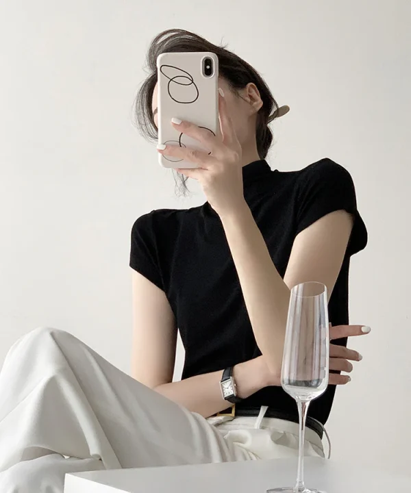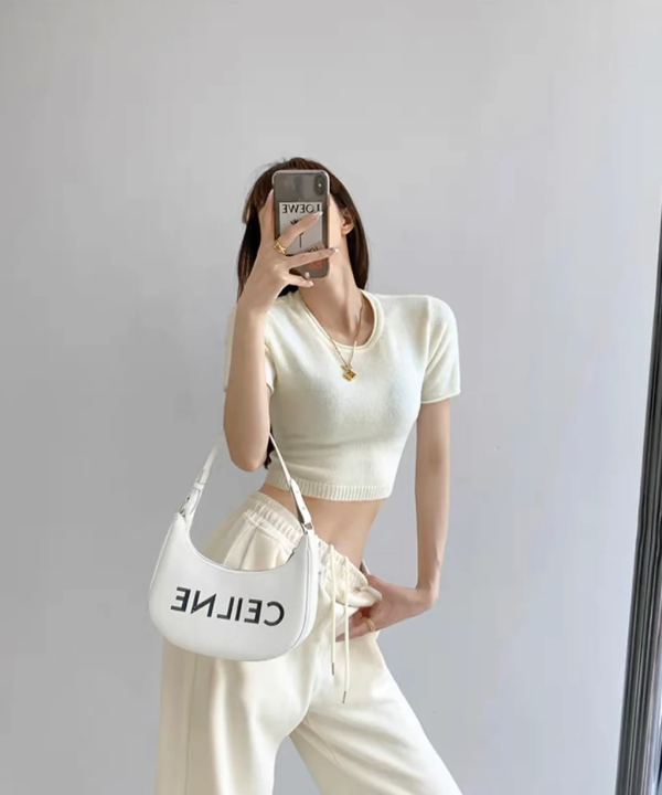 Elegant Round Neck Short Sleeves Crop Top (White)