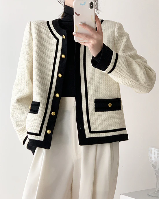 Elegant Houndstooth Tweed Boucle Blazer Jacket