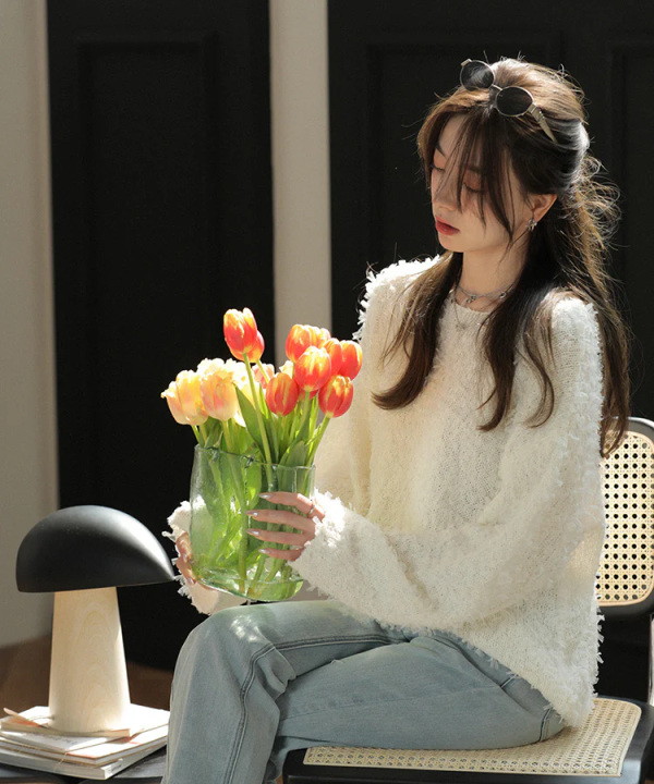 Women Elegant Round Neck Long Sleeves Jumper Top