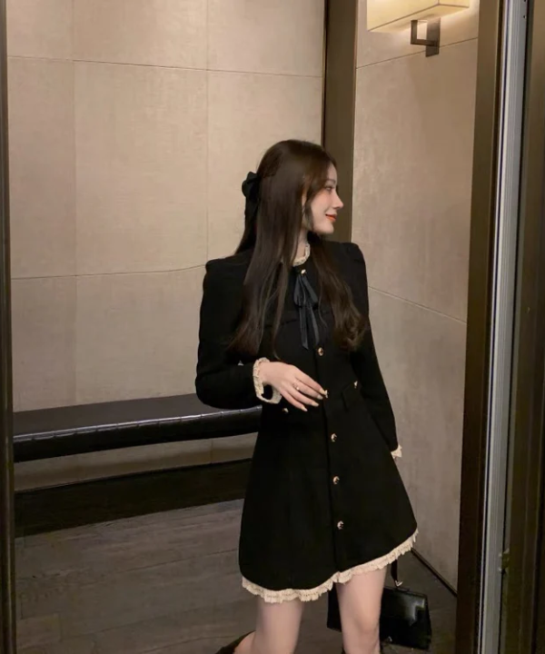 Elegant Women Long Sleeve Contrast Collar Mini Dress
