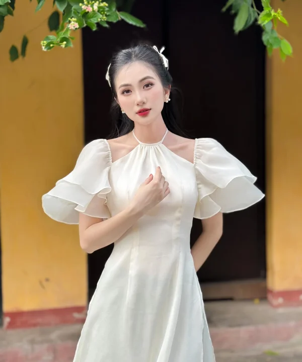 Ao Dai Van Lan / Elegant Midi Dress in Shiny Silk