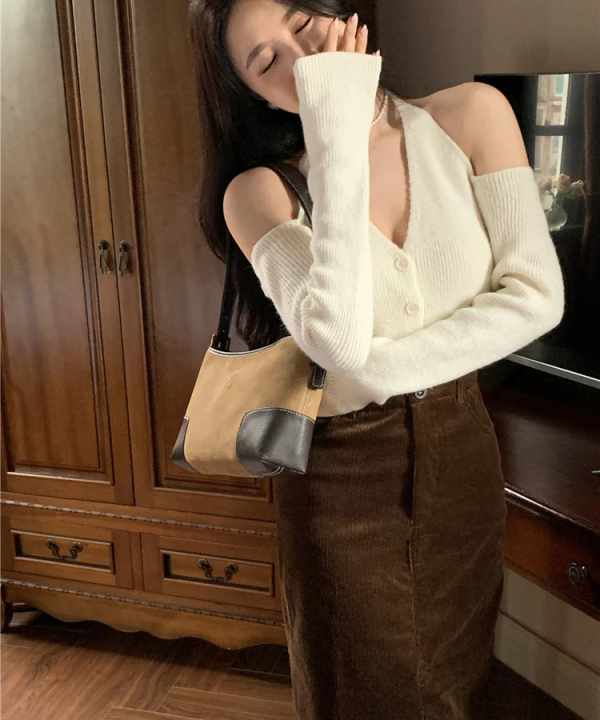 Chic V-neck Slim Long Sleeve Cardigan (White)