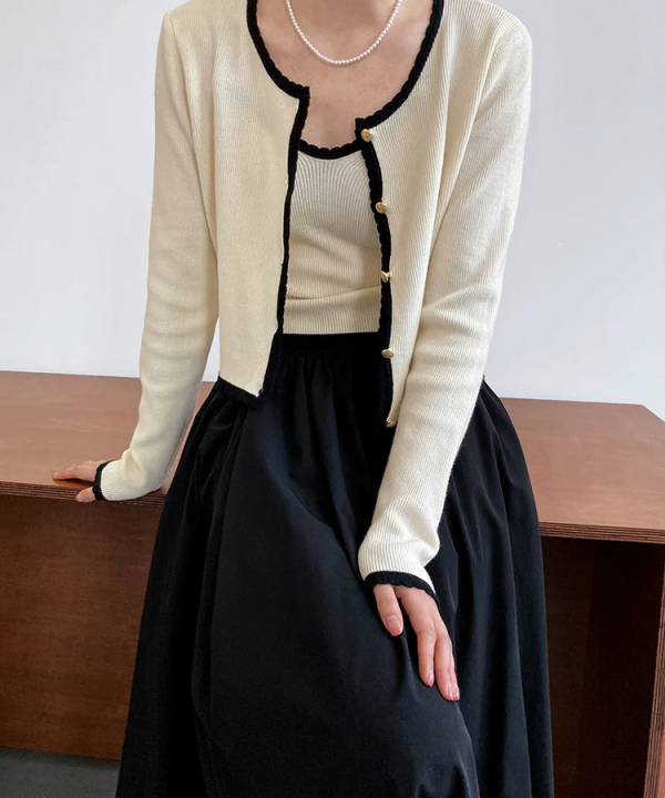 Women Elegant Scoop Neck Long Sleeves Cropped Cardigan (White)