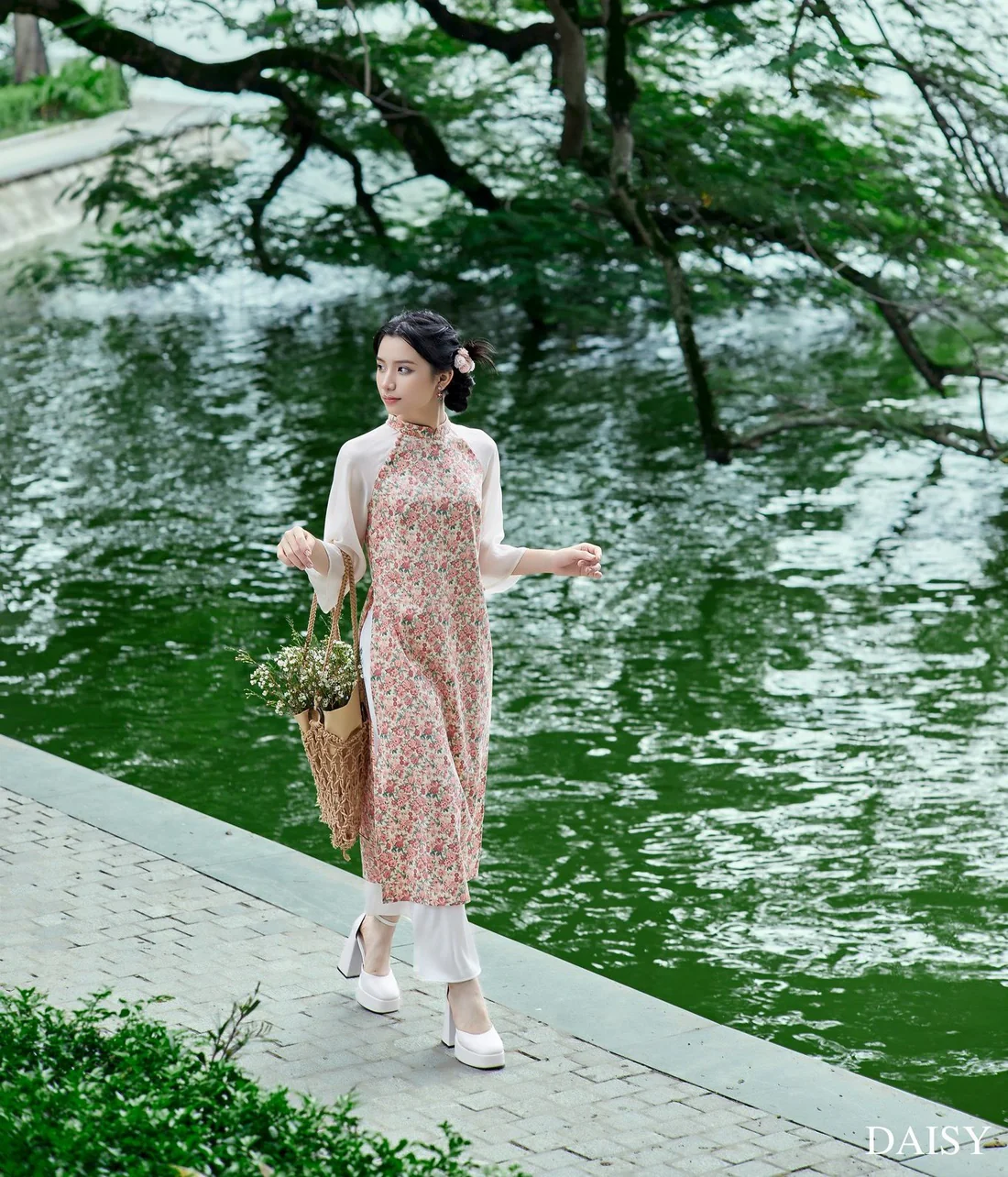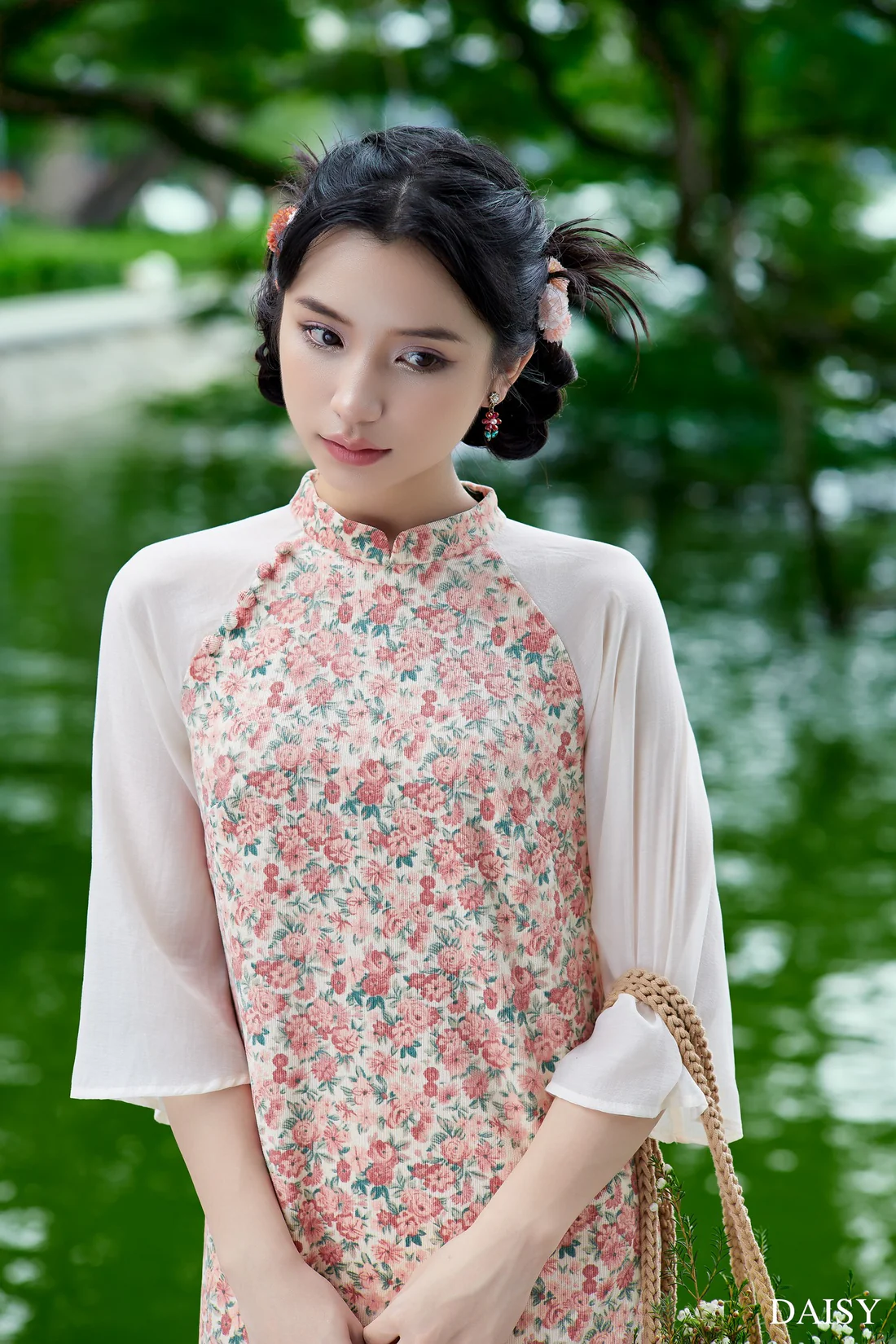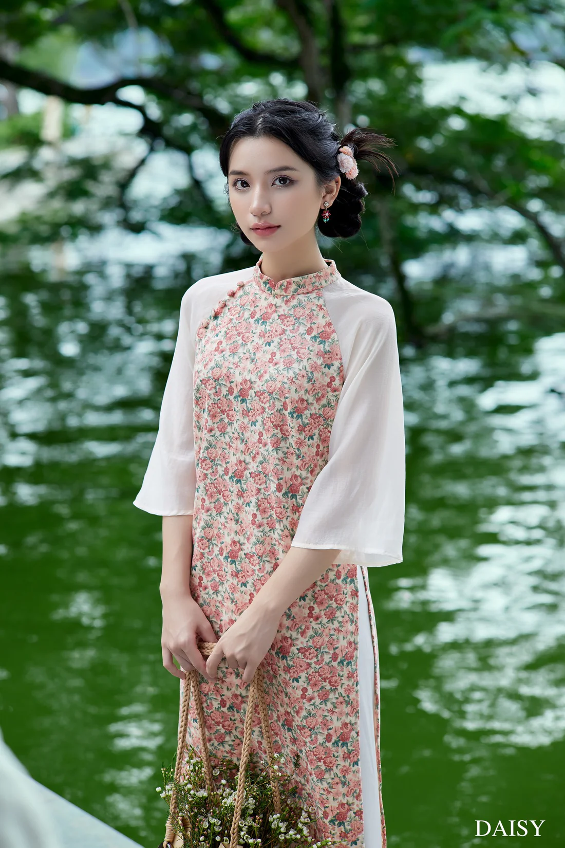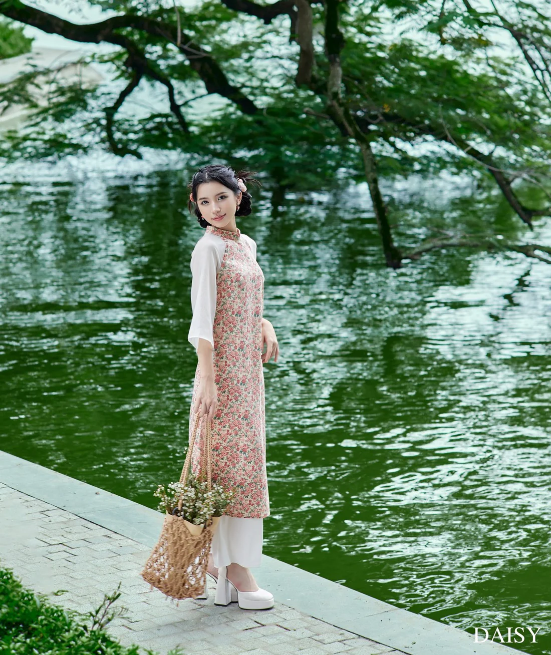 Ao Dai Hong Dao / Elegant Midi Dress in Shiny Silk