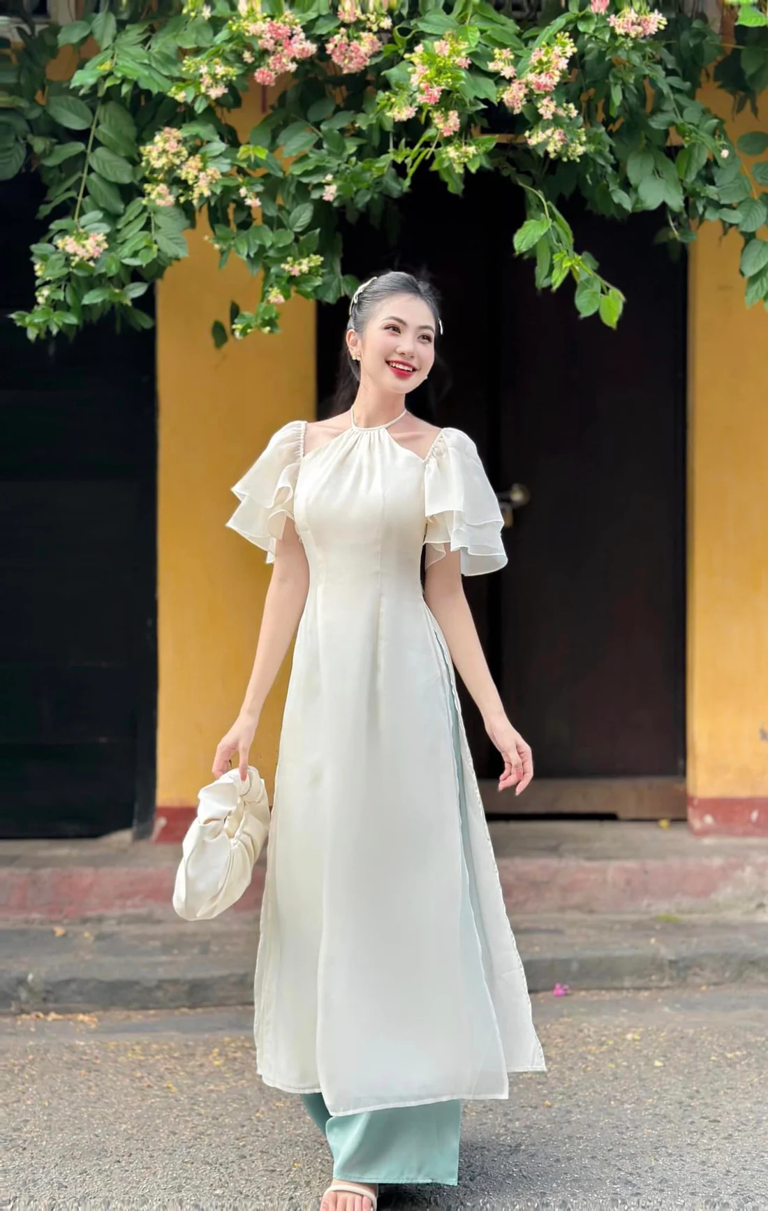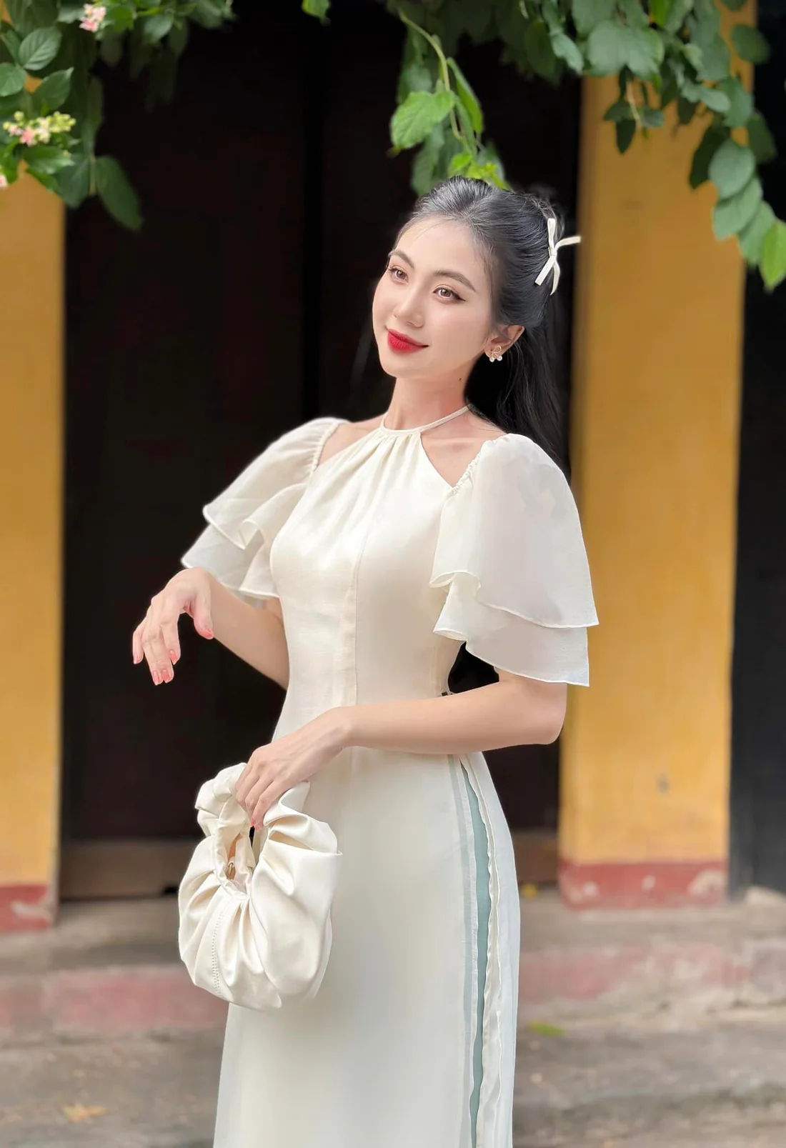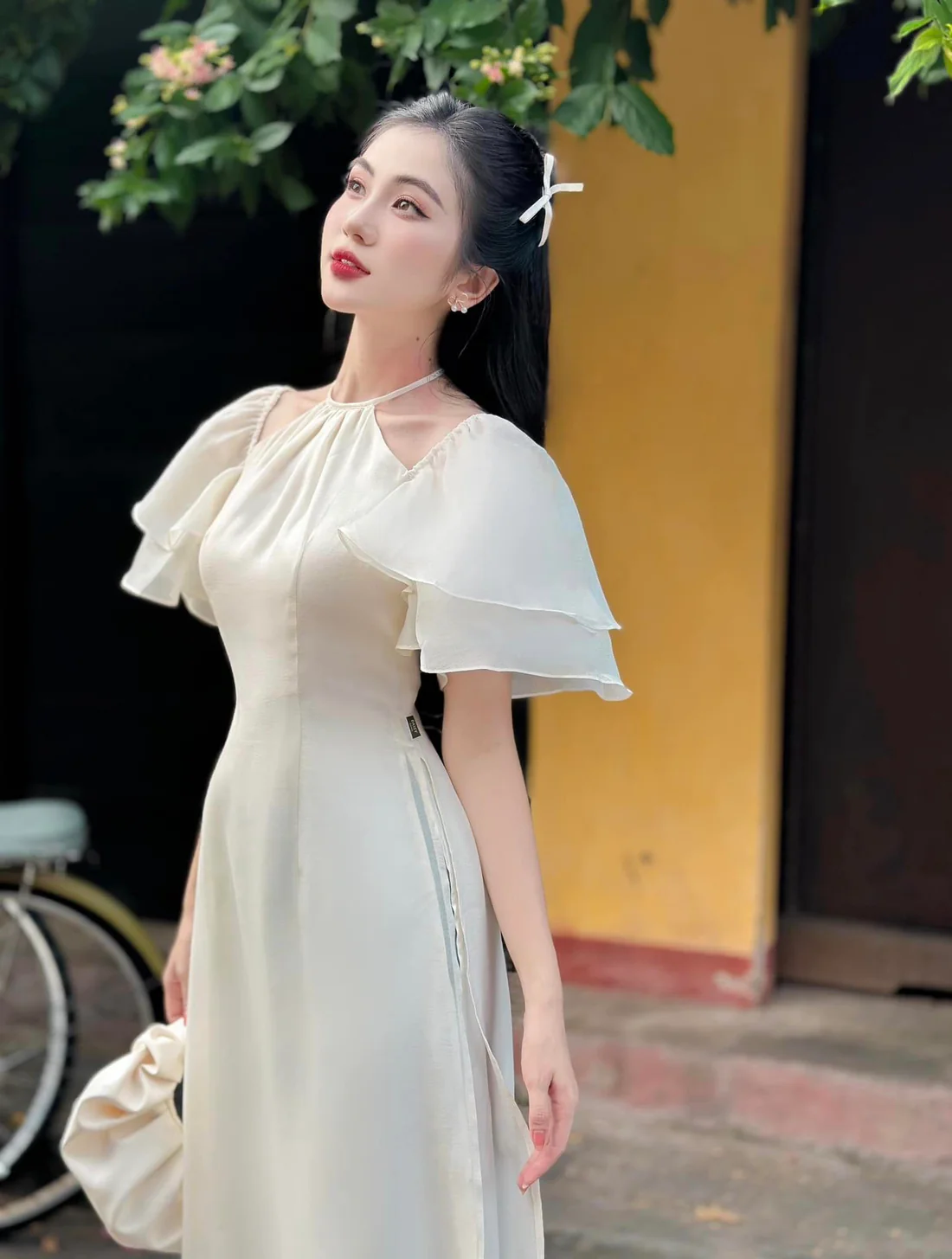 Ao Dai Van Lan / Elegant Midi Dress in Shiny Silk