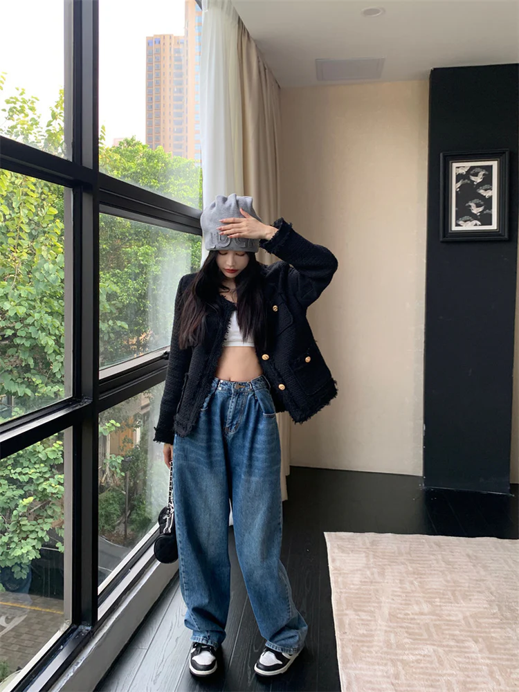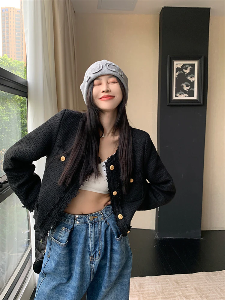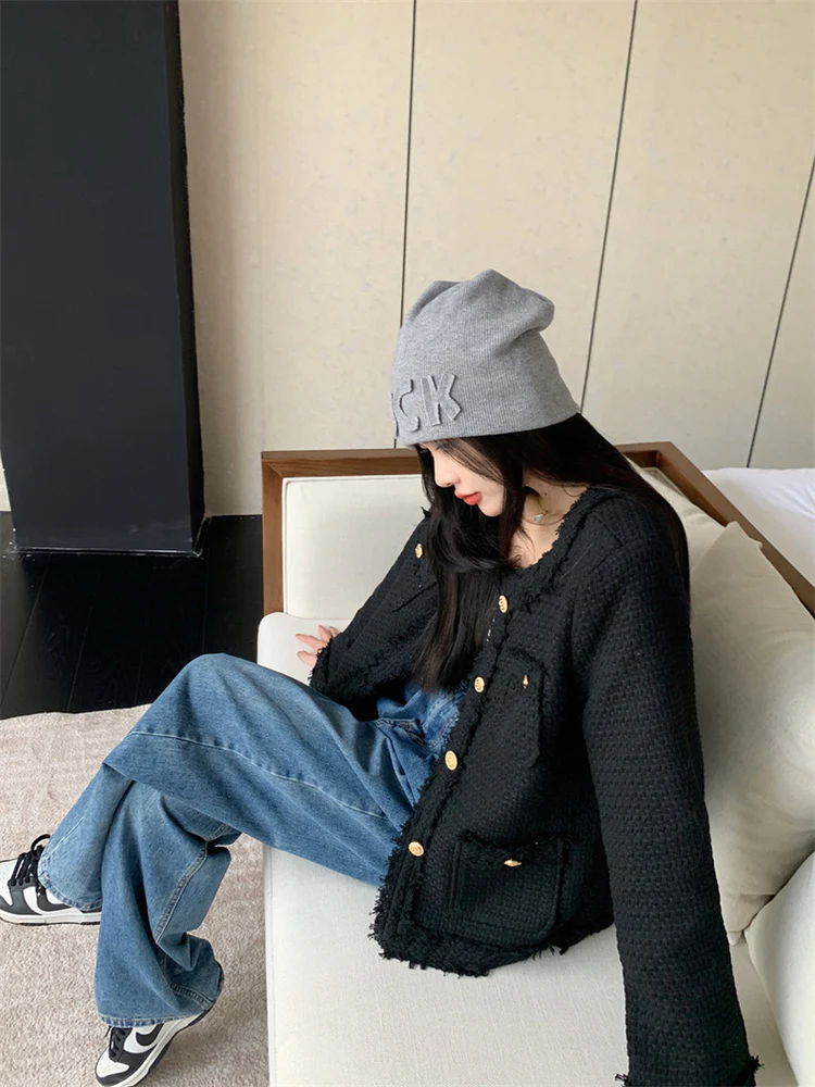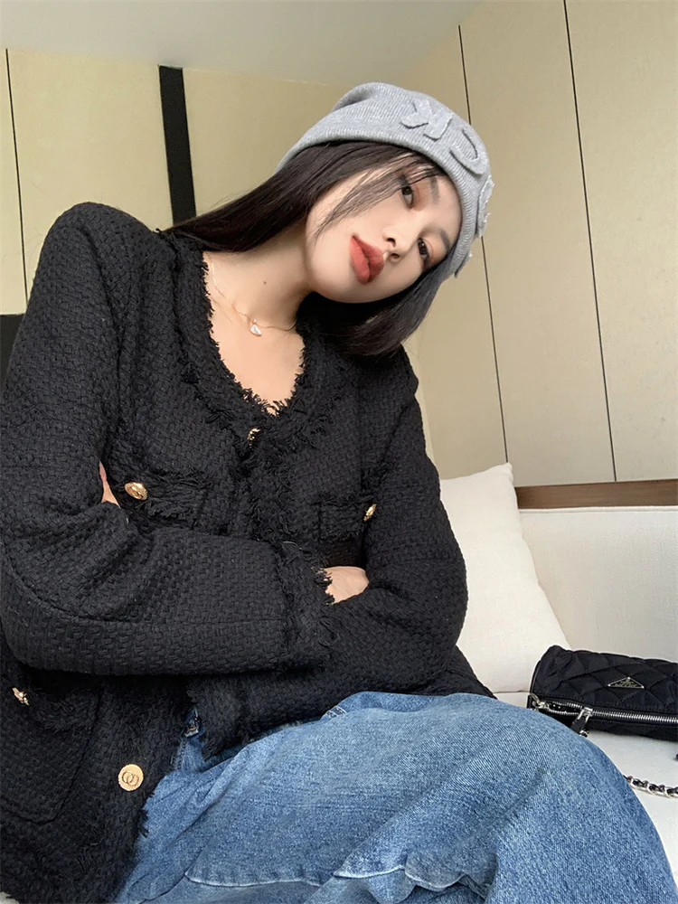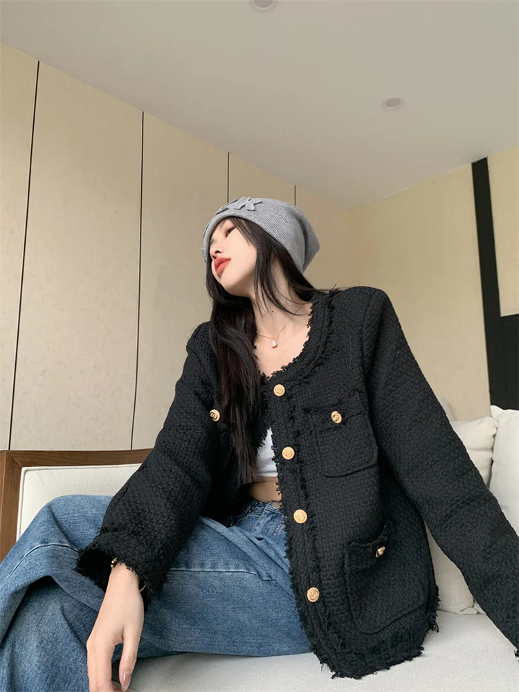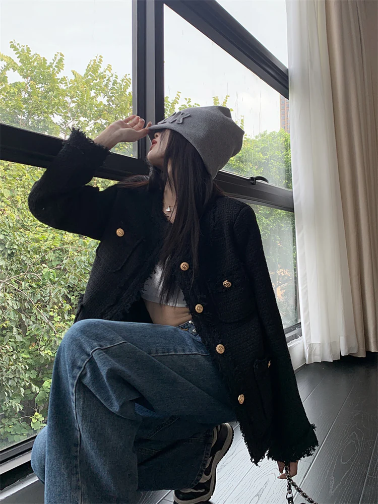 Black Elegant Style Tweed Blazer Jacket