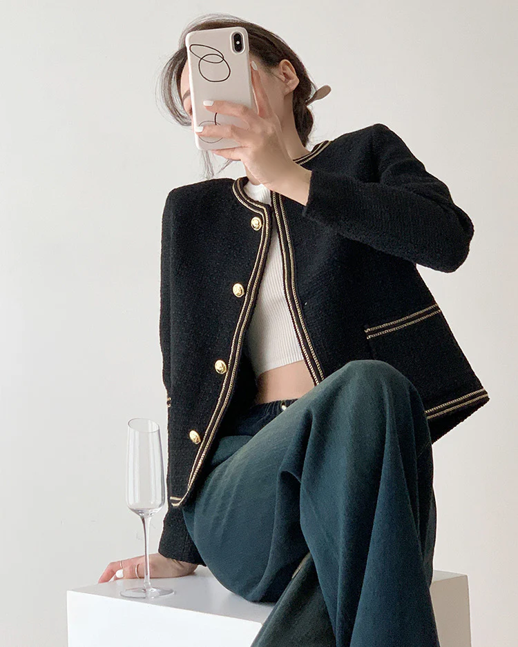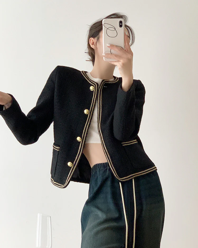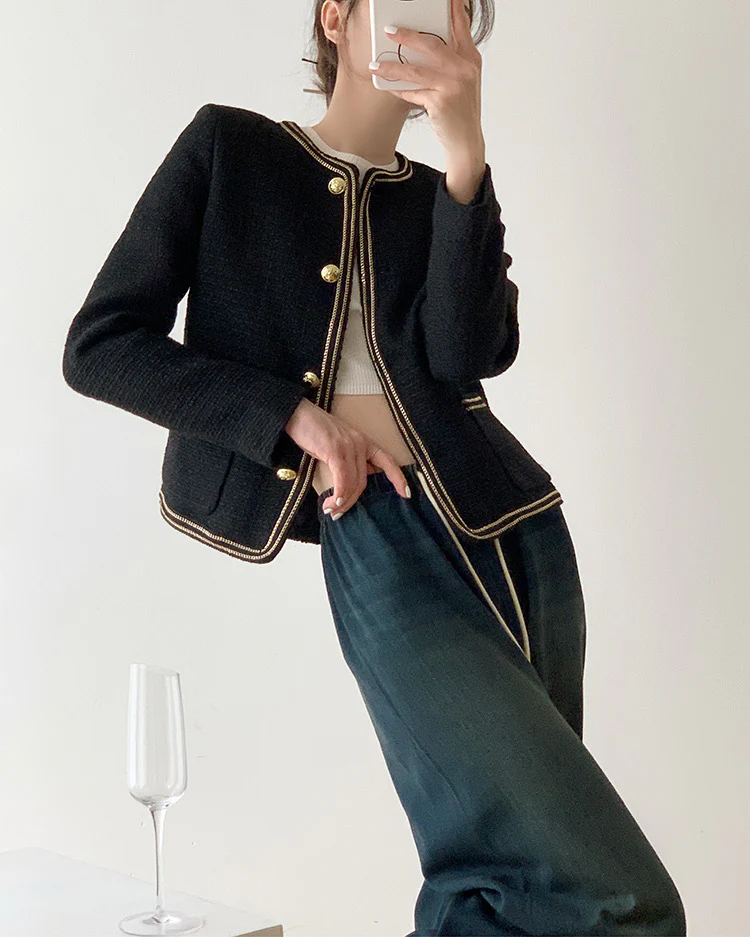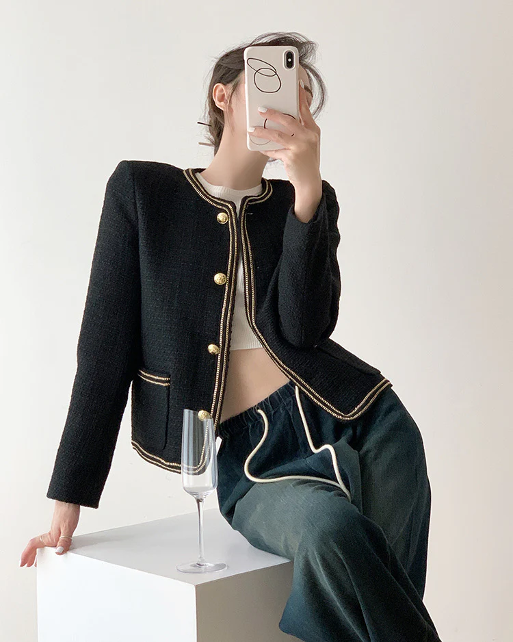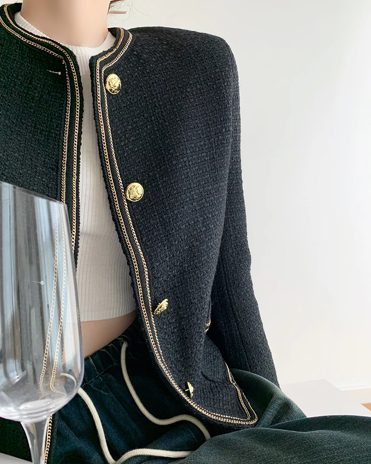 Black Elegant Style Tweed Boucle Blazer Jacket