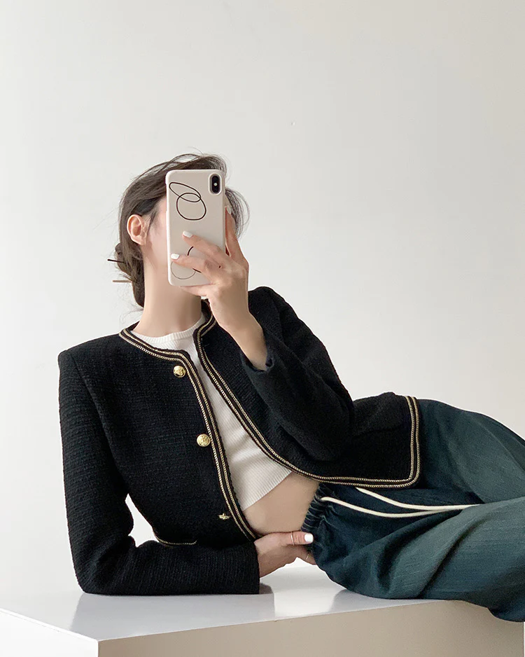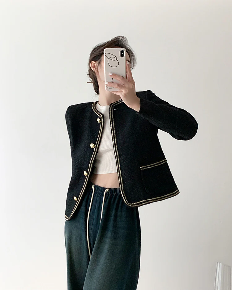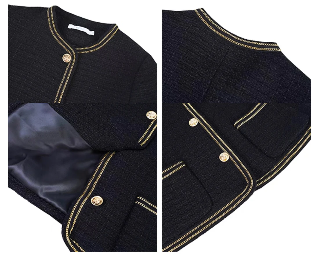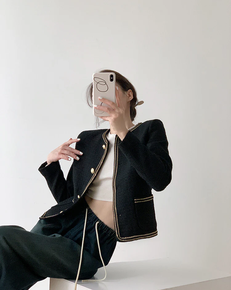 Black Elegant Style Tweed Boucle Blazer Jacket