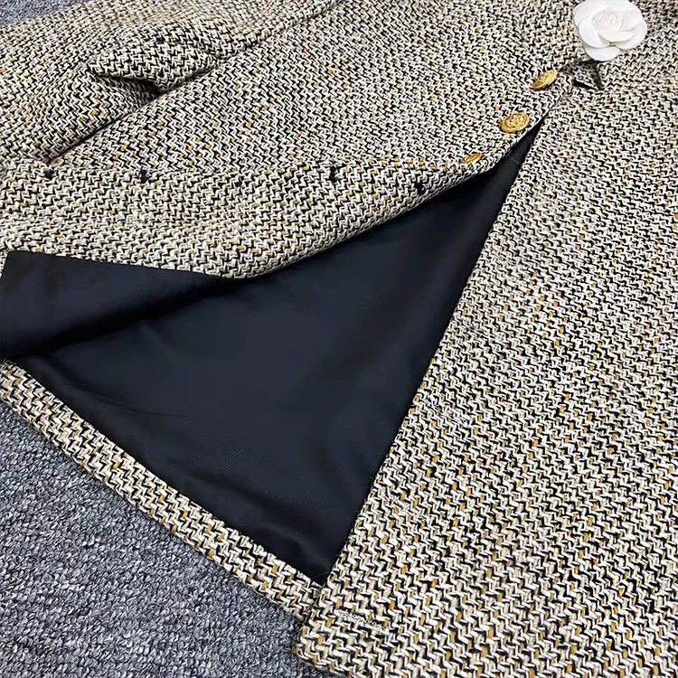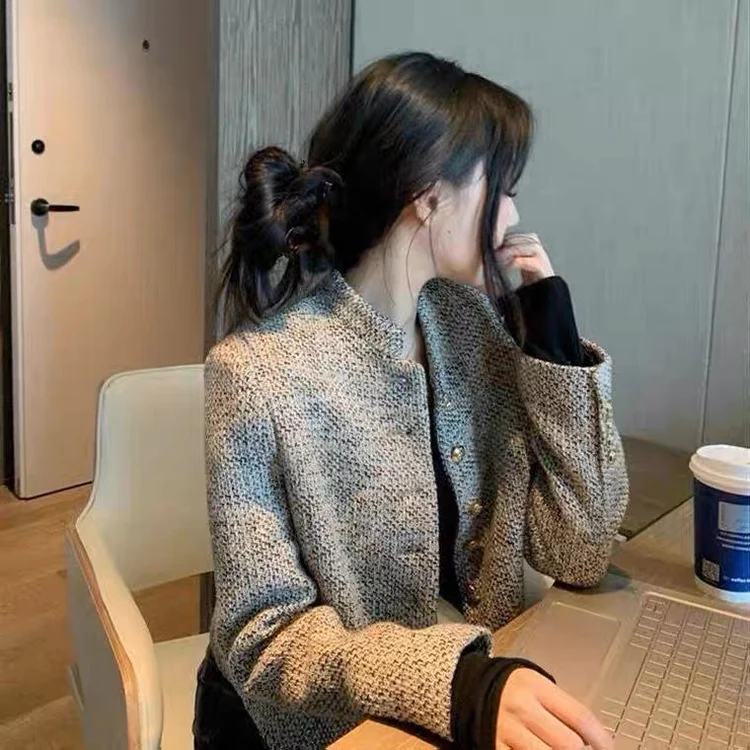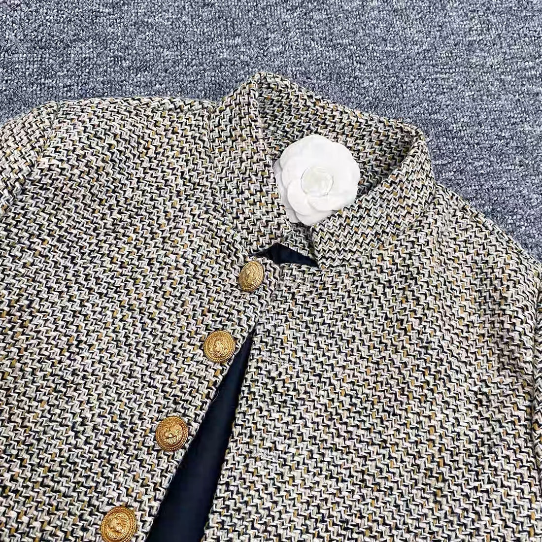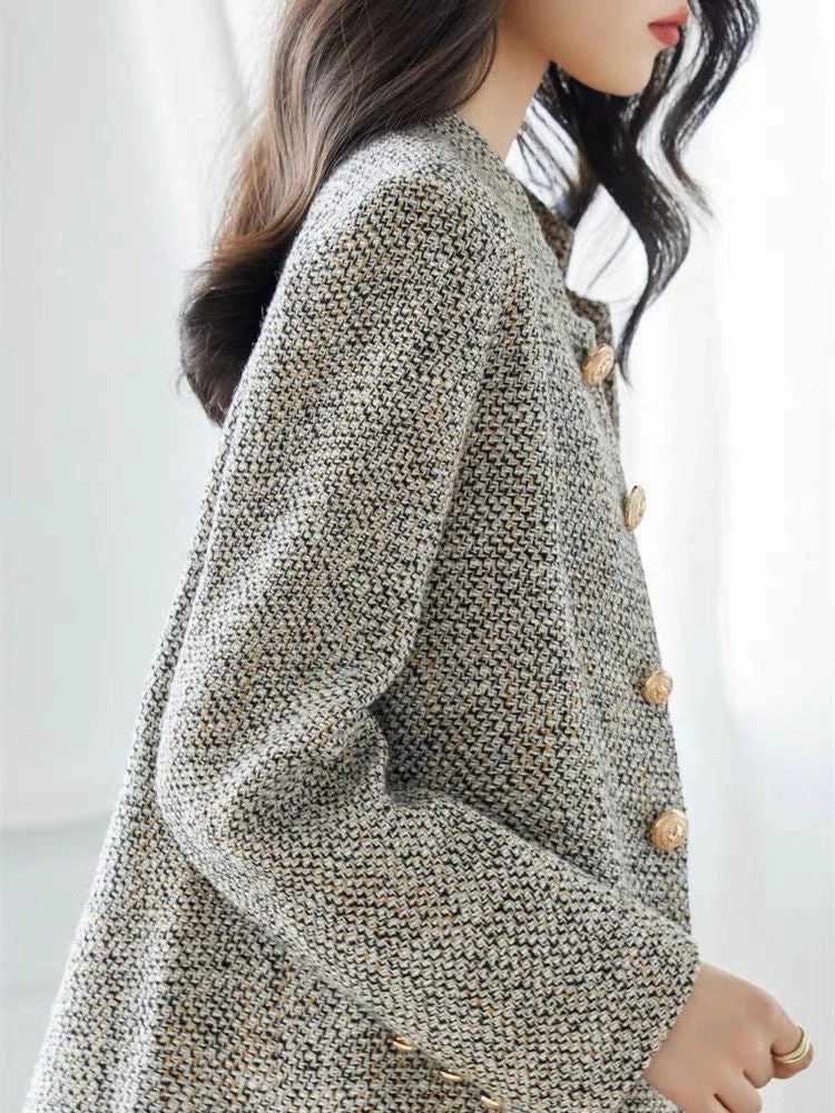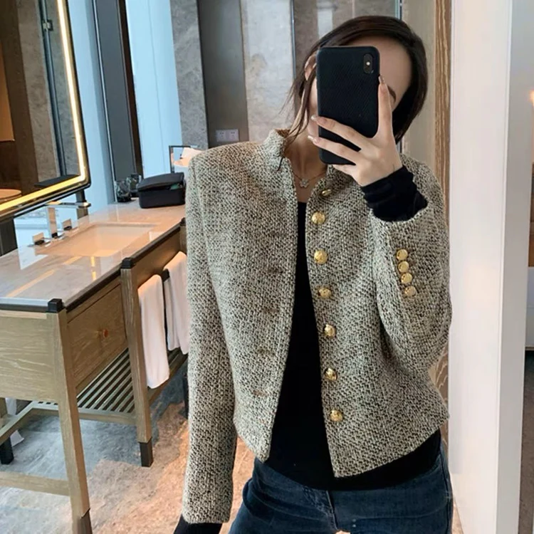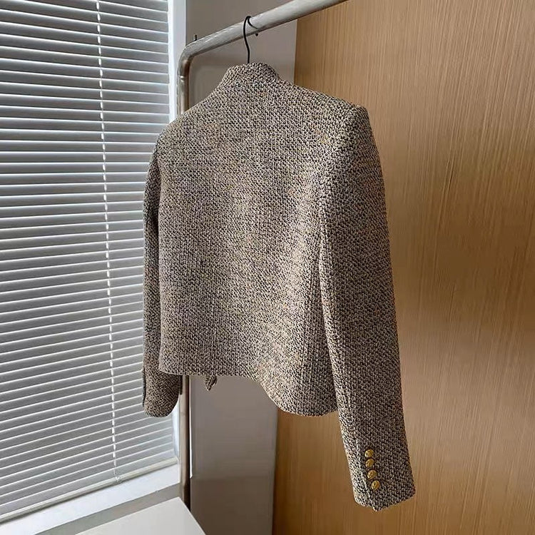 Brass Elegant Style Tweed Cropped Blazer Jacket