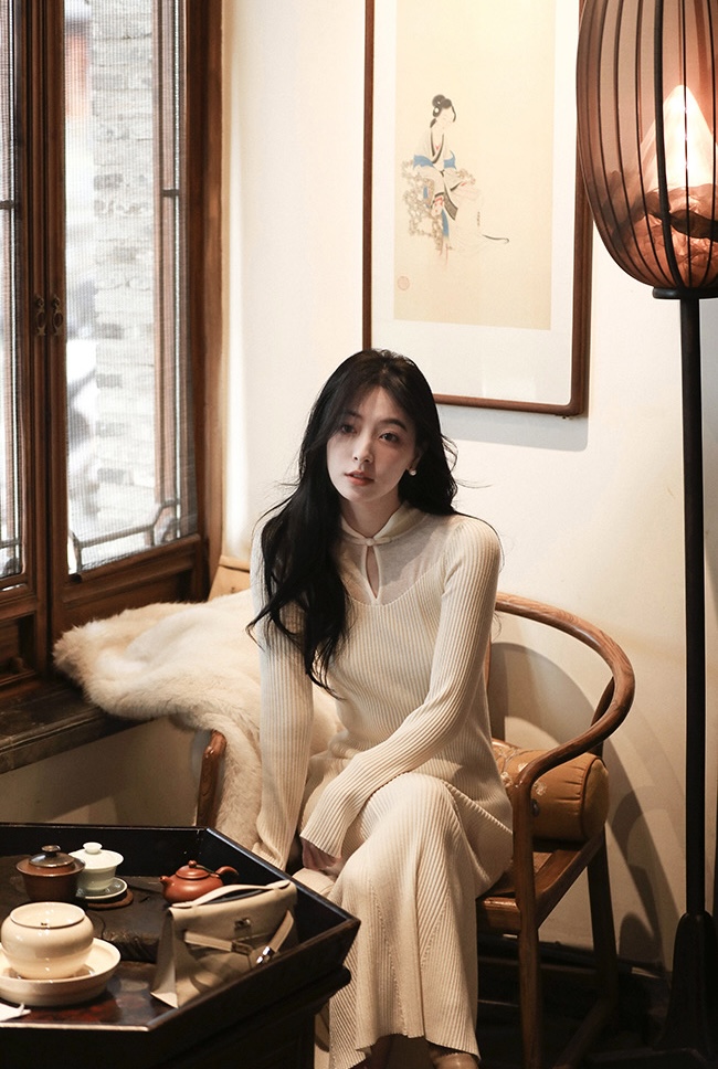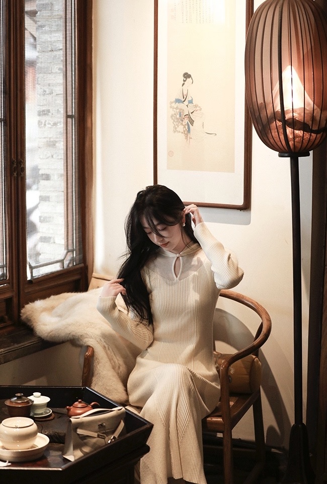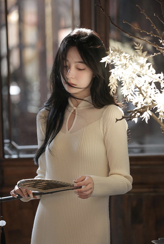 Drawing inspiration from the graceful silhouettes of the 1930s, this cheongsam midi dress embodies timeless elegance and understated glamour. Designed with a sleek high neckline and a softly tailored fit, it celebrates femininity through clean lines and refined proportions.