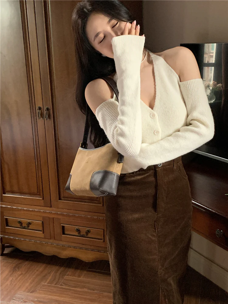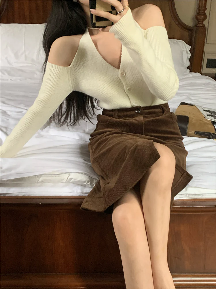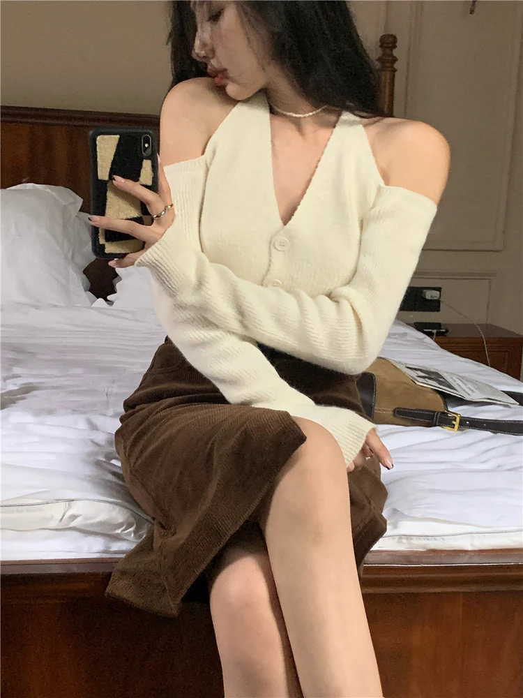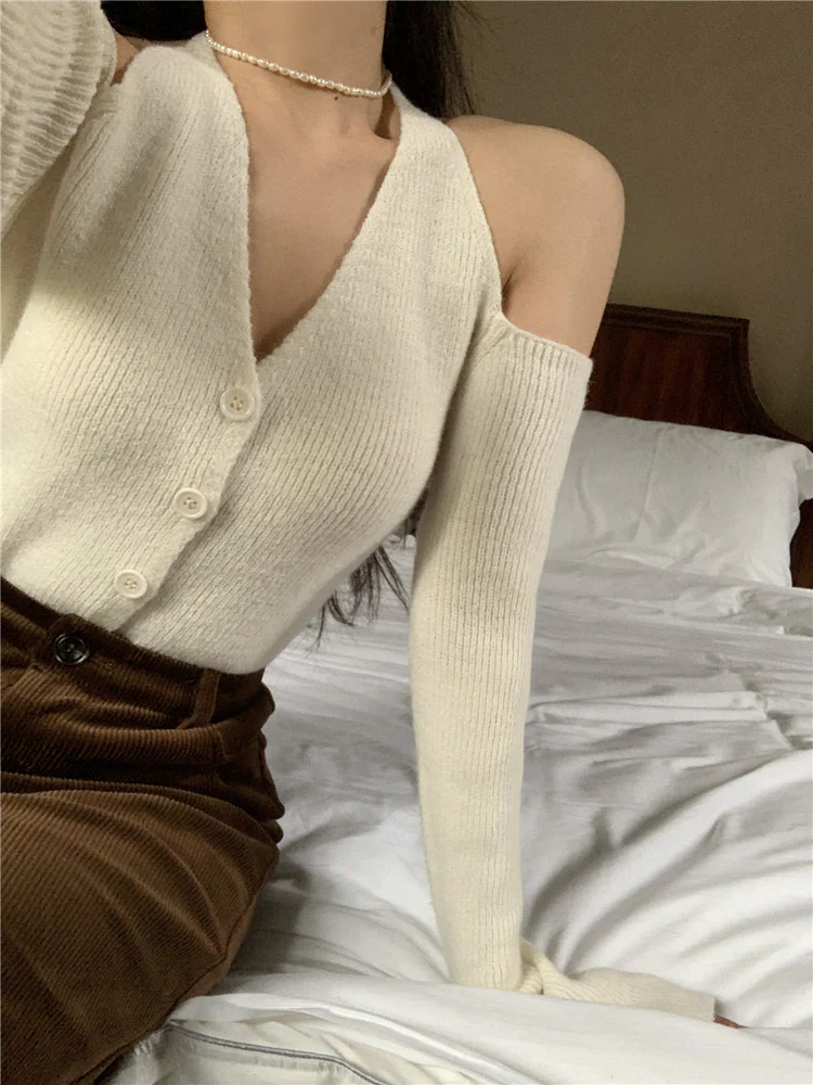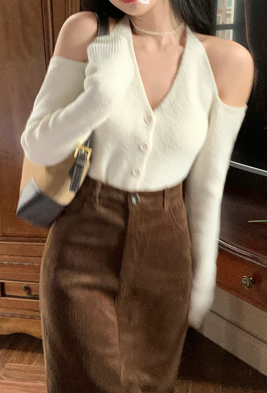Chic V-neck Slim Long Sleeve Cardigan (White)