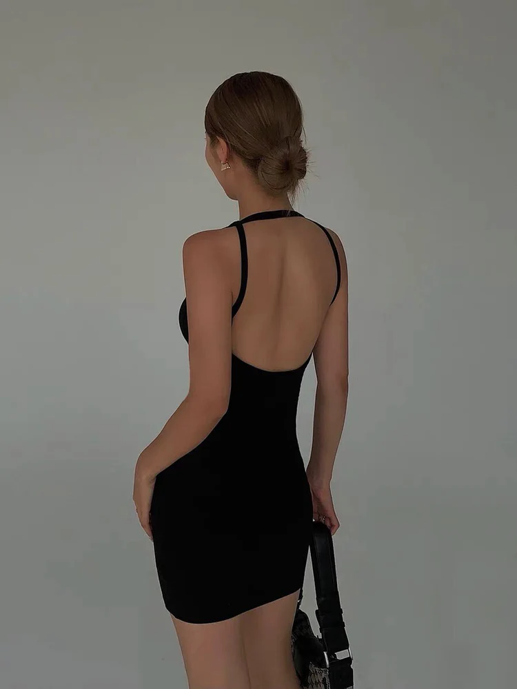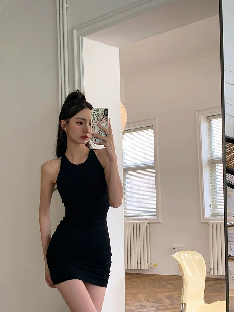 Chic Women Sleeveless Mini Dress – Stretchy Bodycon Style Cotton Mini Dress (Black)