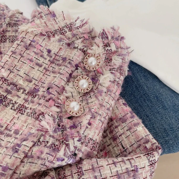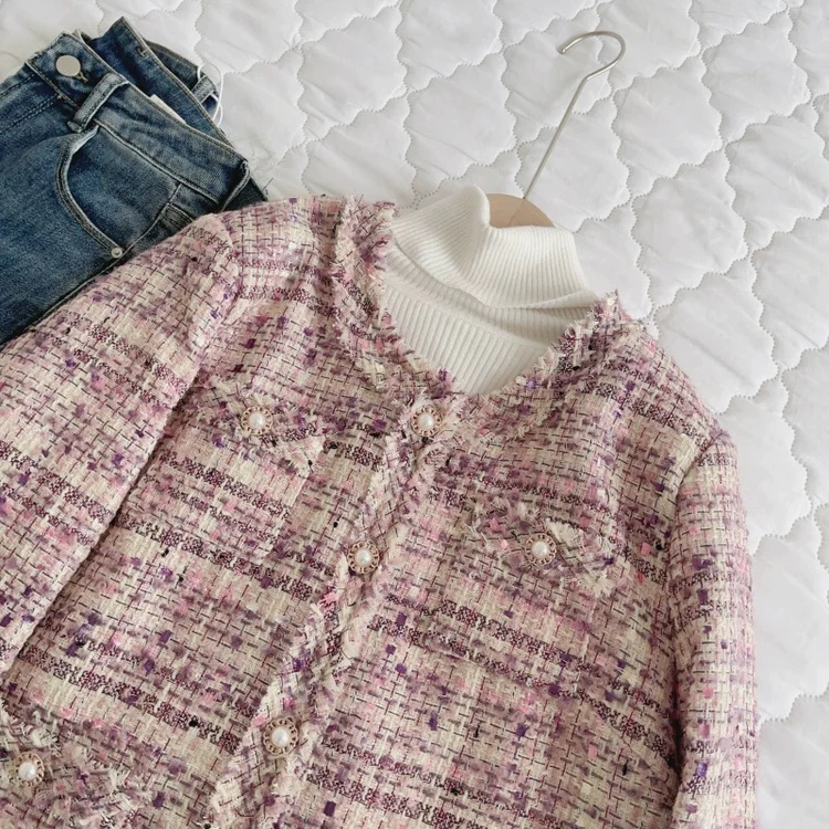 Elevate your style with our Boucle Tweed Blazer Jacket. This trendy vintage-style outfit, perfect for Spring/Summer, combines elegance and quality in a high-quality short suit top. Discover more fashionable and timeless pieces on our website.