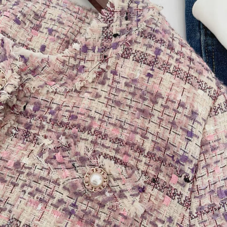 Elegant Boucle Tweed Blazer Jacket (Pink)