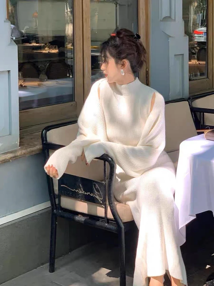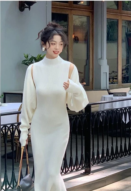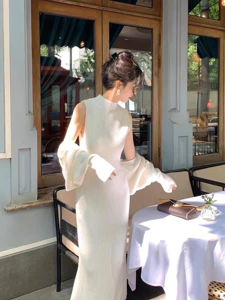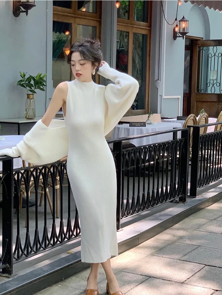 Elegant Chic Women Long Sleeve Midi Dress Set