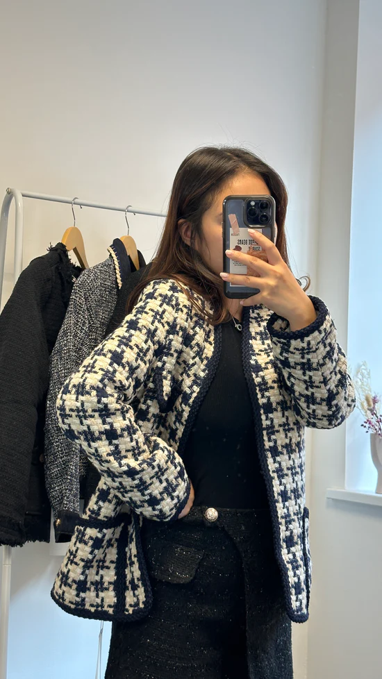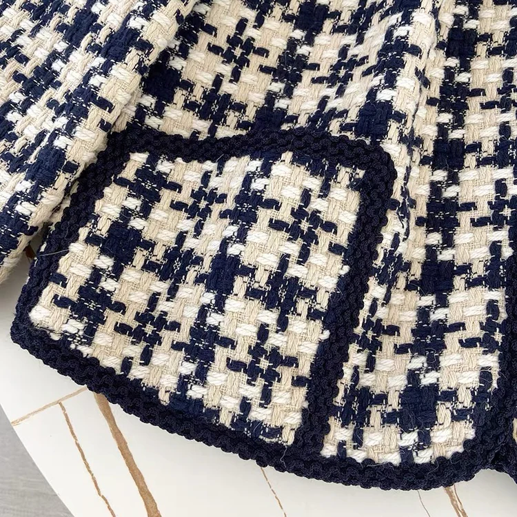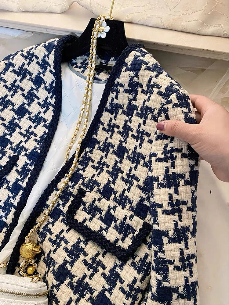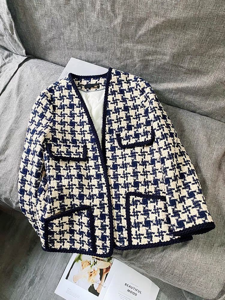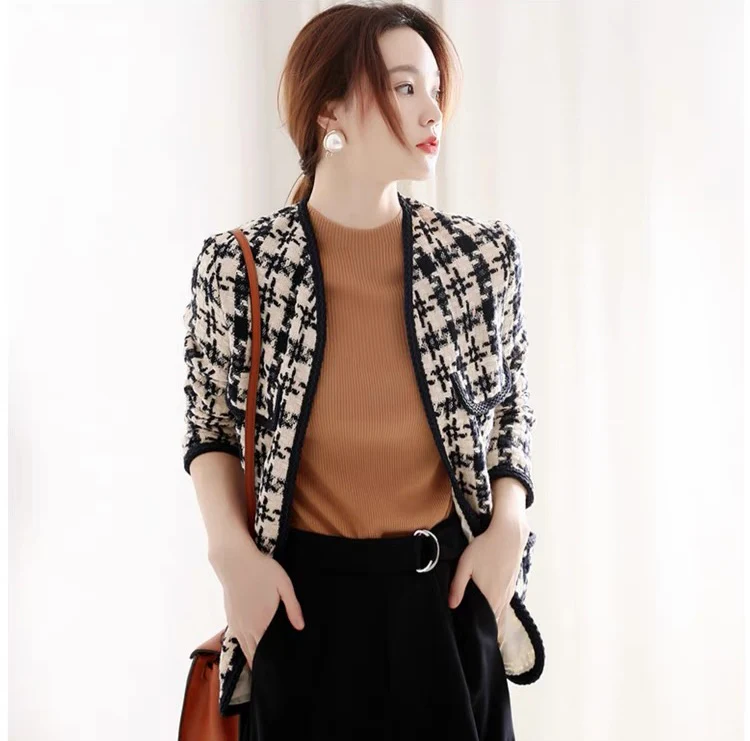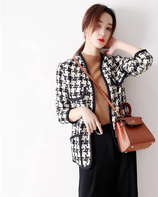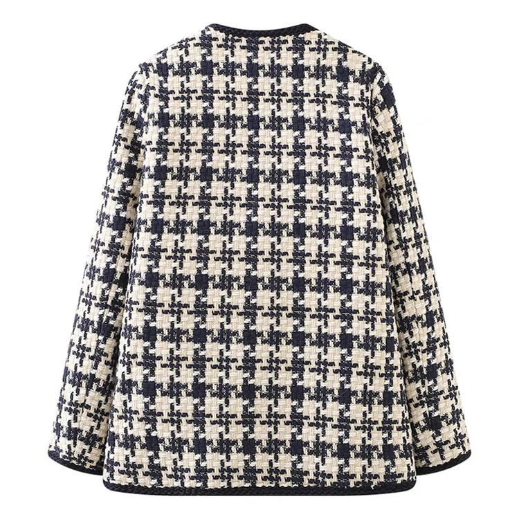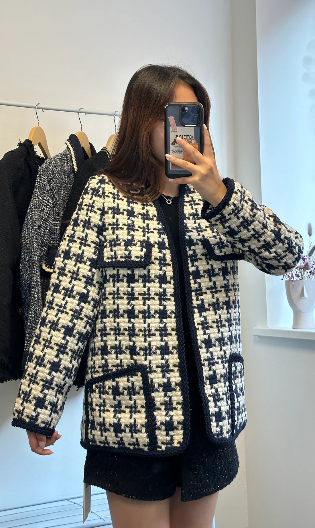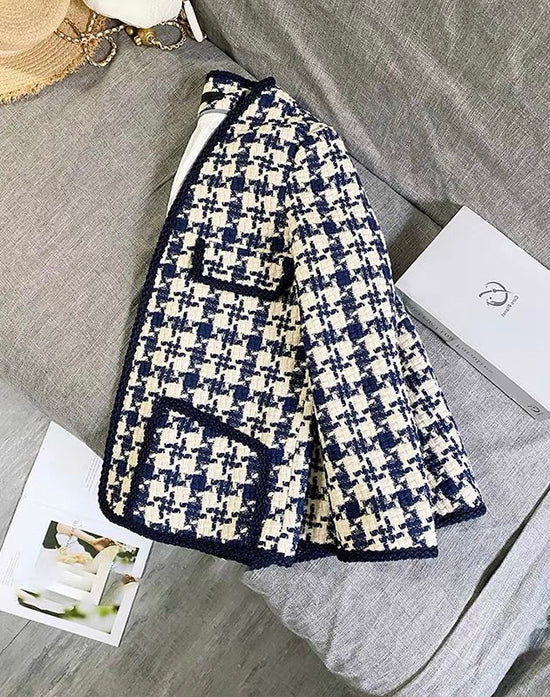 Elegant Houndstooth Tweed Boucle Blazer Jacket