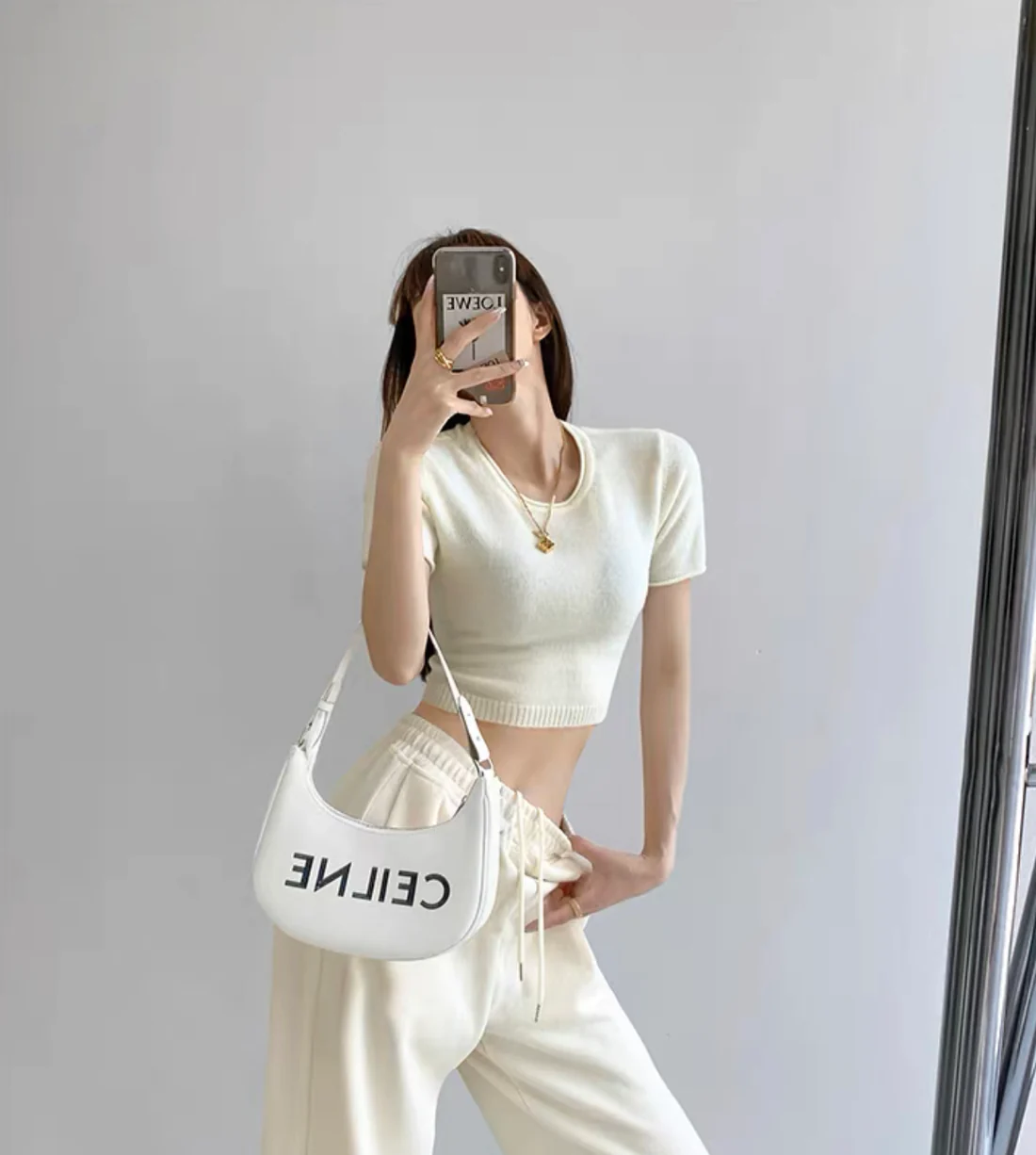 Elegant Round Neck Short Sleeves Crop Top (White)