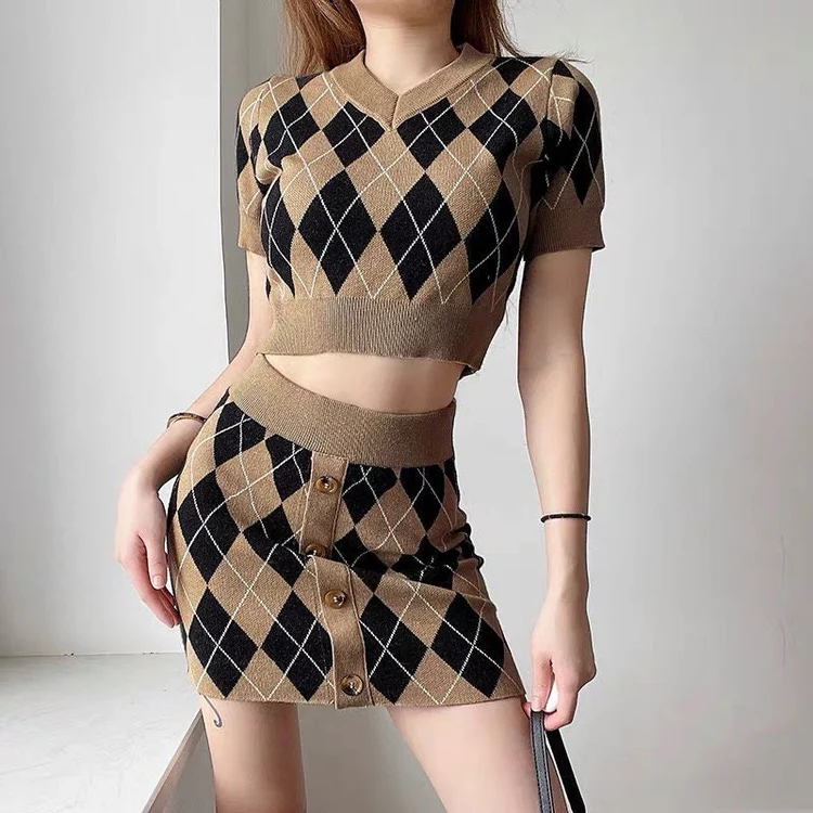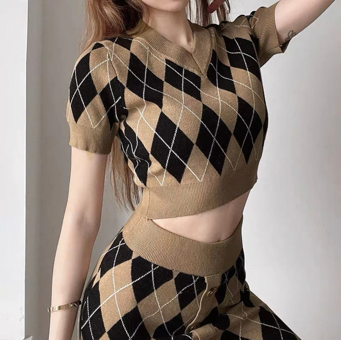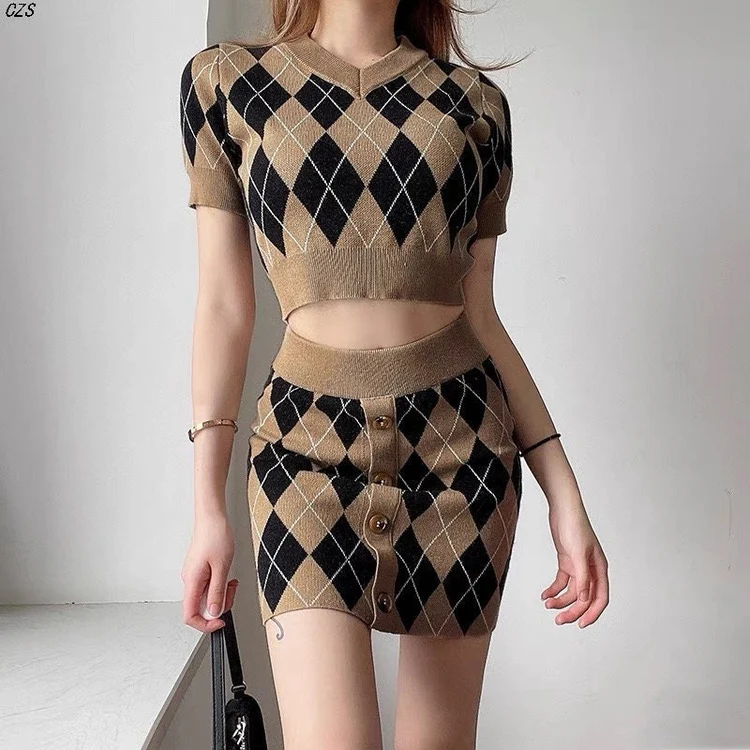 Elegant Short Sleeves Bodycon V Neck Knitted Crop Top