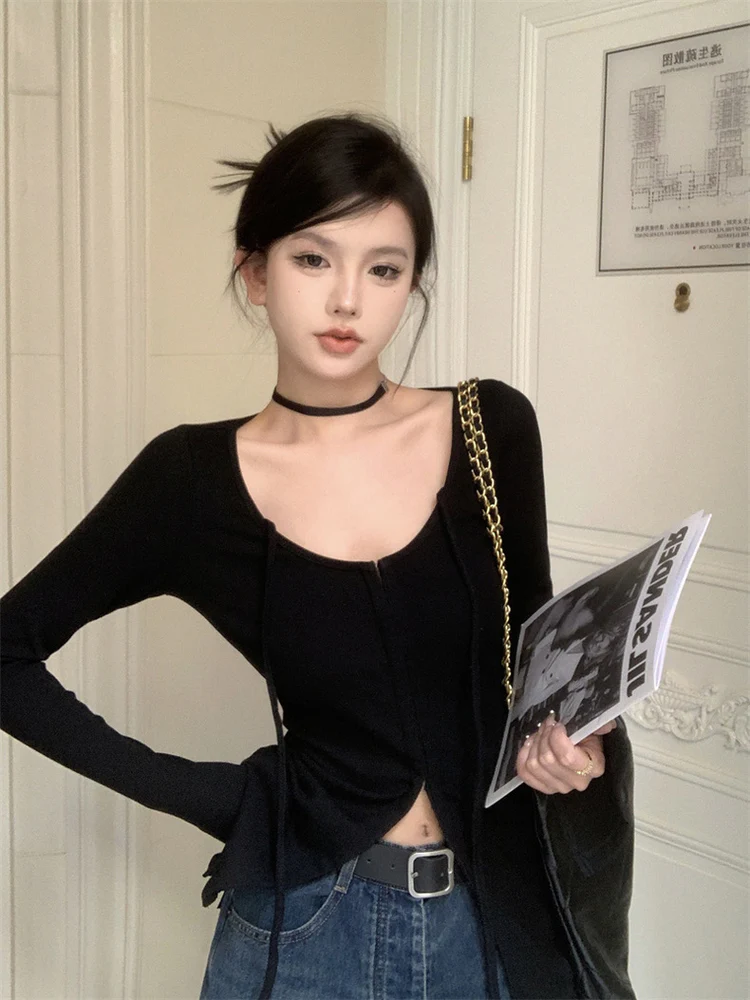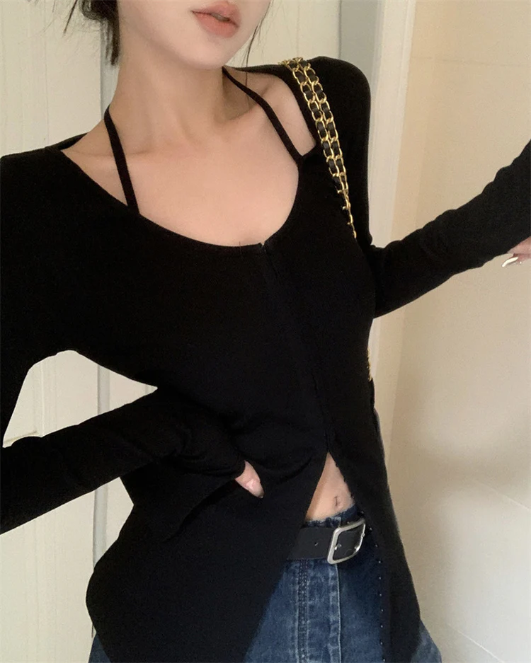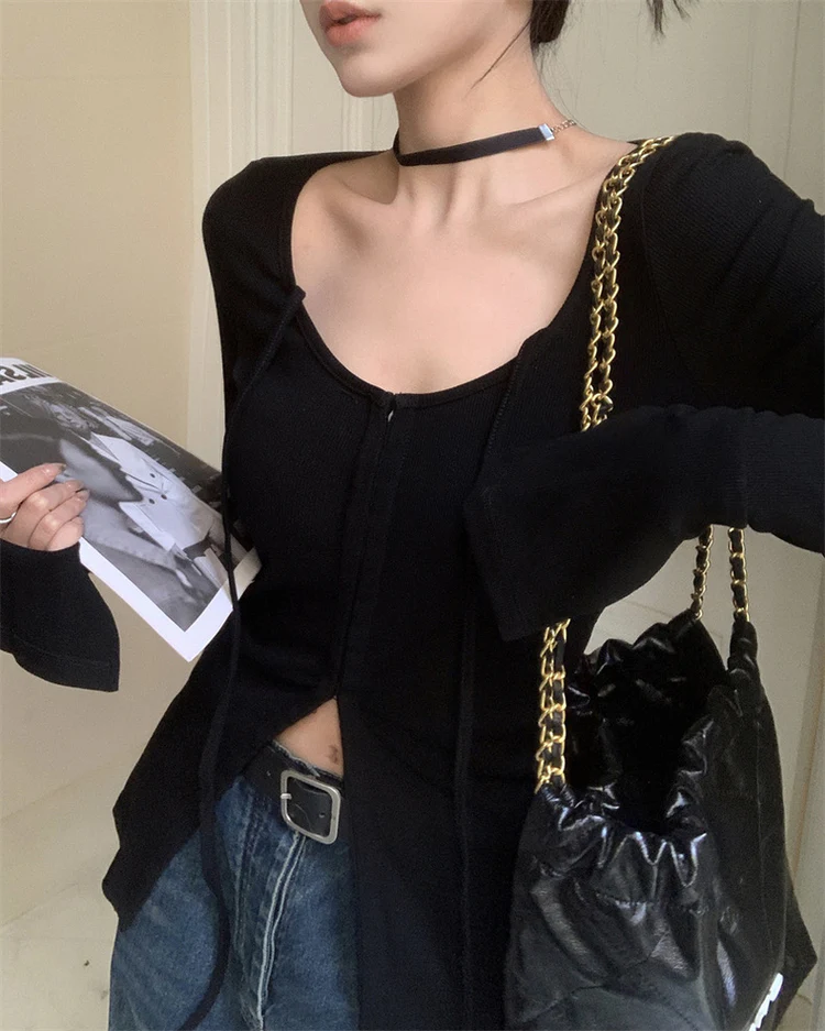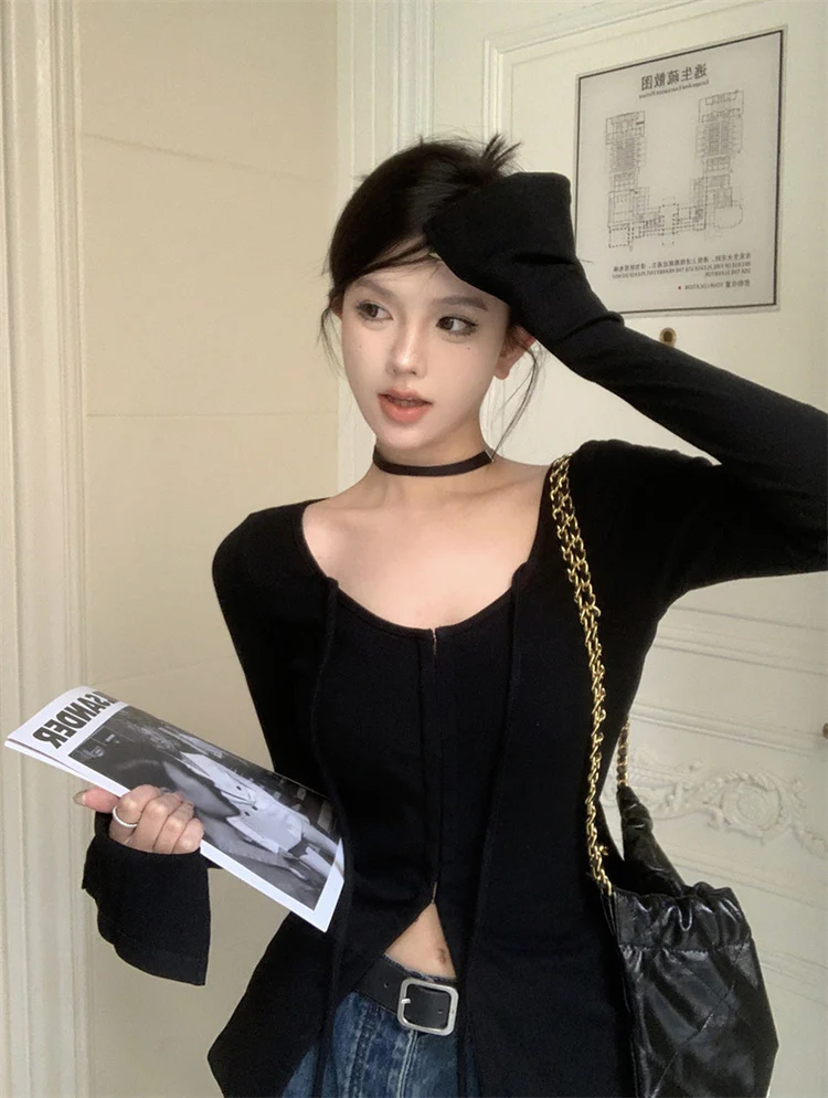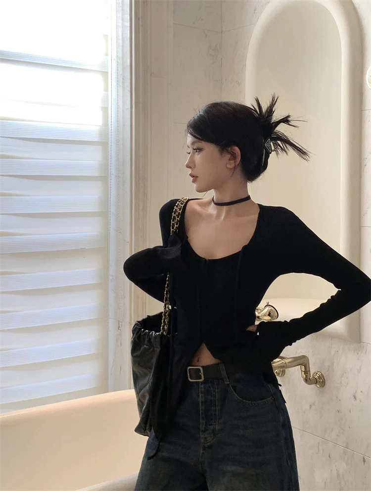 Elegant U-Shape Neck Long Sleeves Cardigan Top