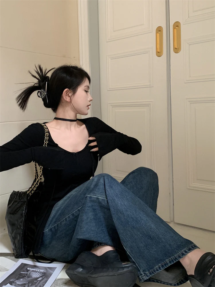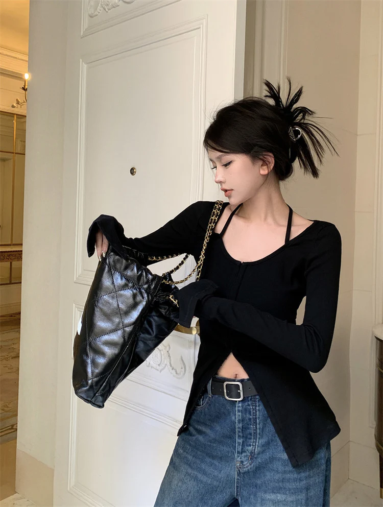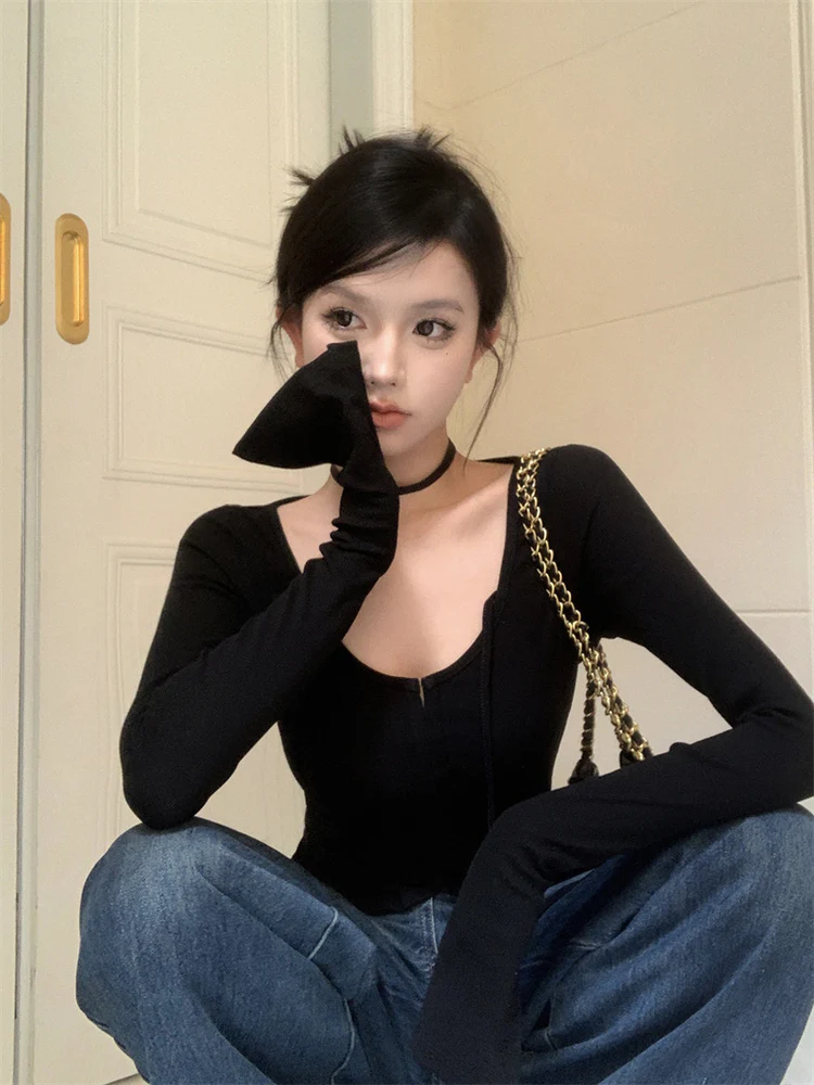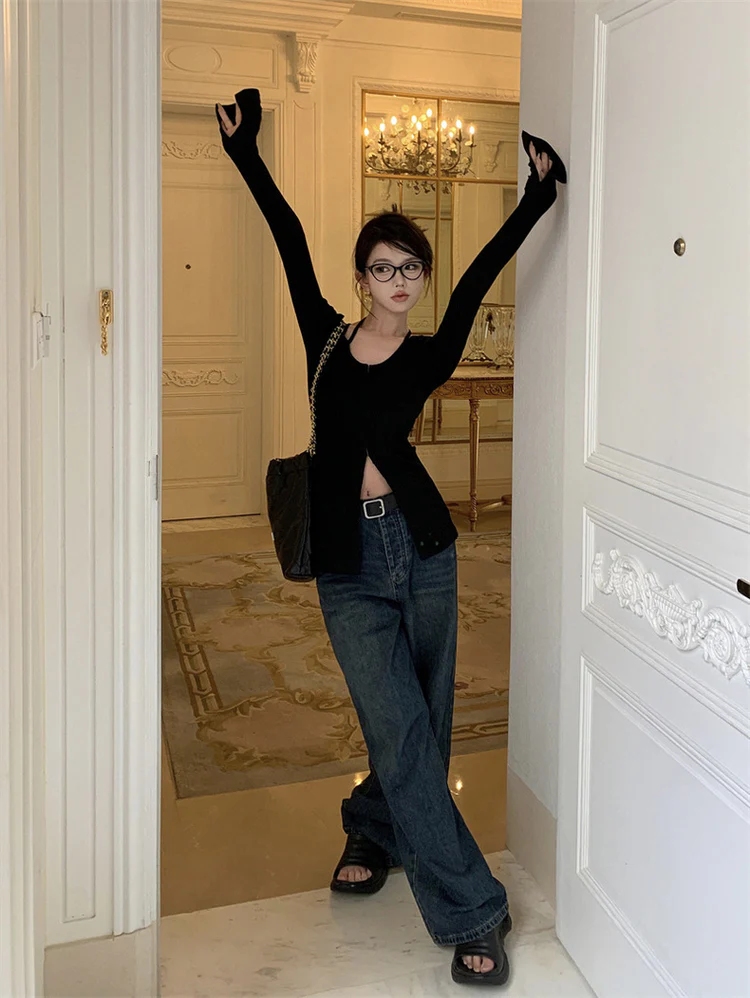 Elegant U-Shape Neck Long Sleeves Cardigan Top