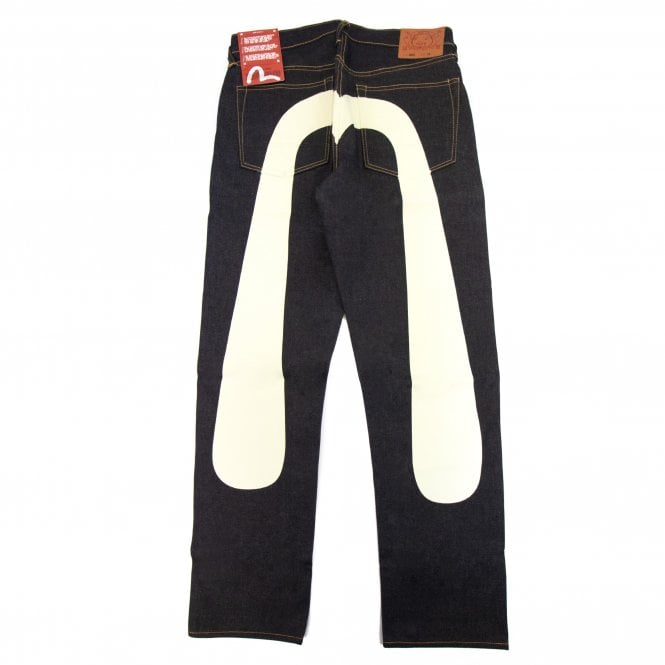 Introducing the Evisu Seagull Painted Daicock Jeans in Dark Navy—a perfect blend of traditional Japanese craftsmanship and contemporary streetwear aesthetics. These jeans feature Evisu’s iconic Daicock print, hand-painted in the distinctive seagull shape, symbolizing the brand’s dedication to quality and artistry.