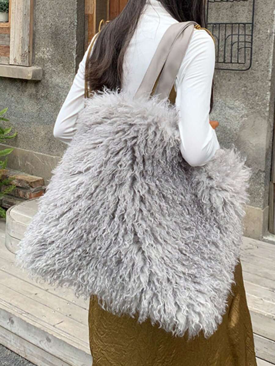 This gradient plush tote bag is ideal for those who want both style and function, offering a chic way to carry your daily essentials in the colder months.