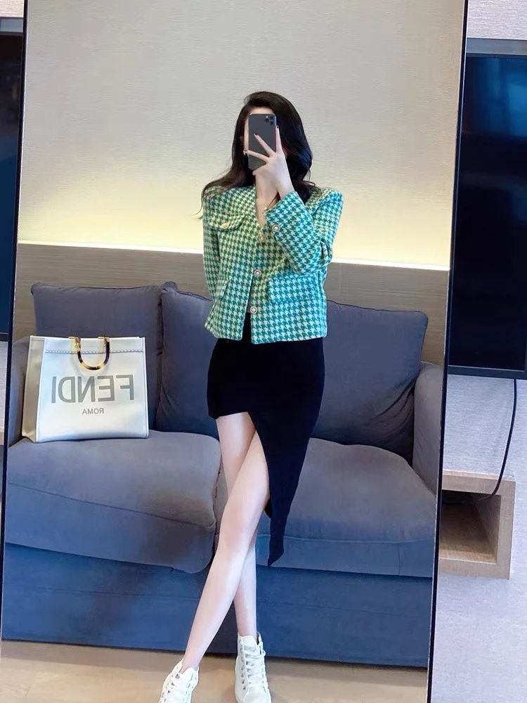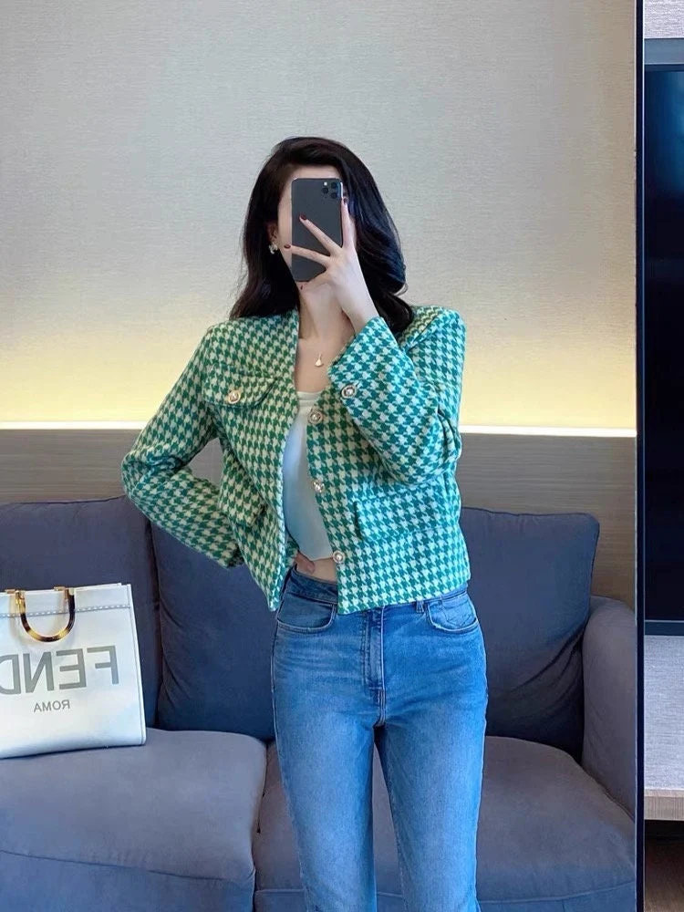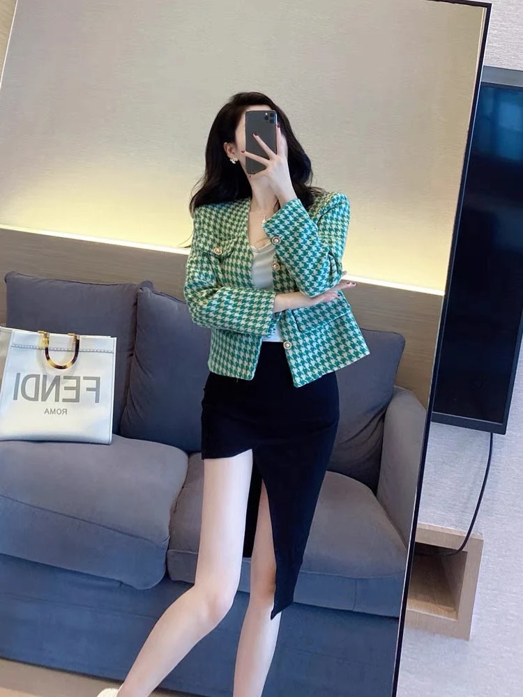 Green Elegant Style Cropped Blazer
