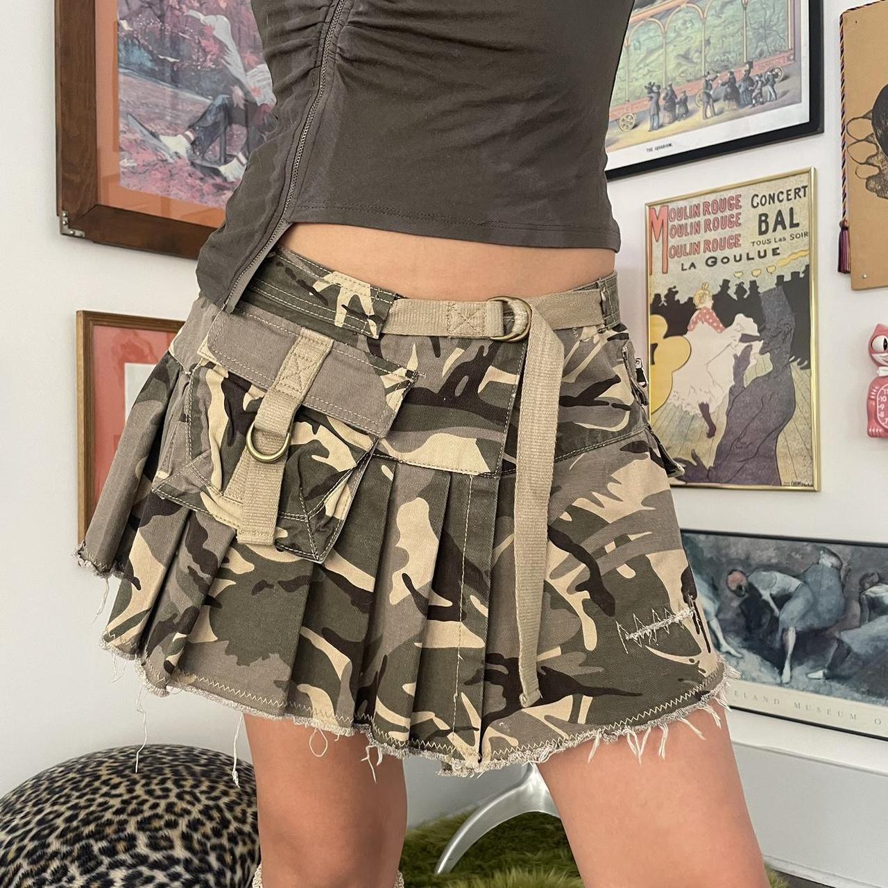 Add a bold yet feminine touch to your wardrobe with the Khaki Camo Mini Ruffle Skirt. This eye-catching piece combines edgy camouflage print with delicate ruffle and ruched detailing, offering a unique blend of toughness and charm.