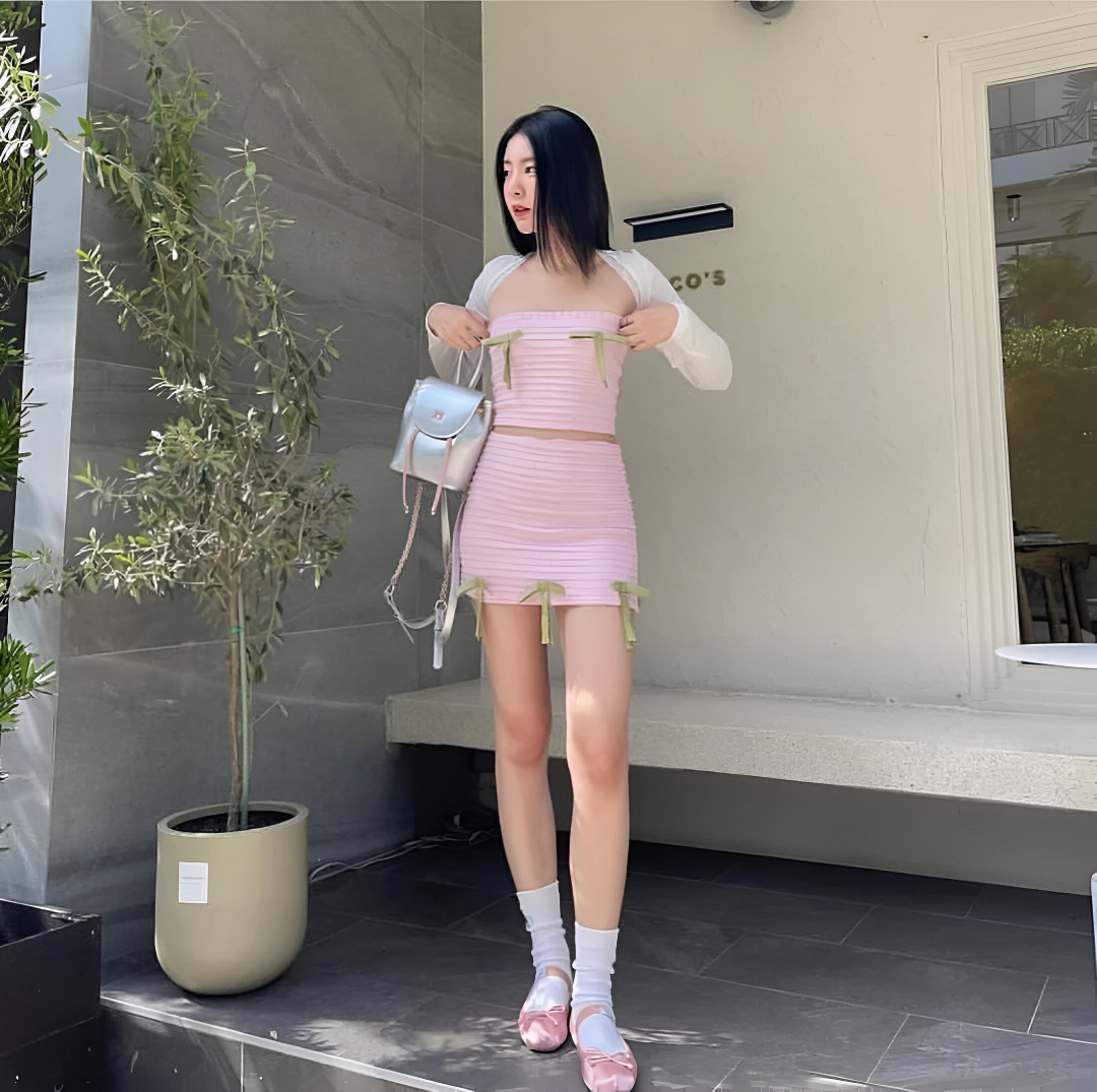 Pink Sakura Set – She by Shj | 1 Women Crop Top + 1 Mini Skirt