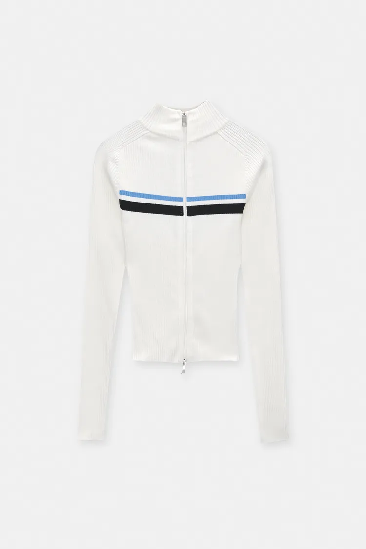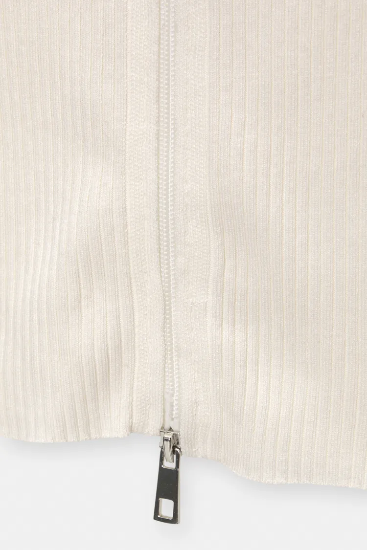 Ribbed Zip Through Jumper with Stripe Detail in Ecru | Pull & Bear