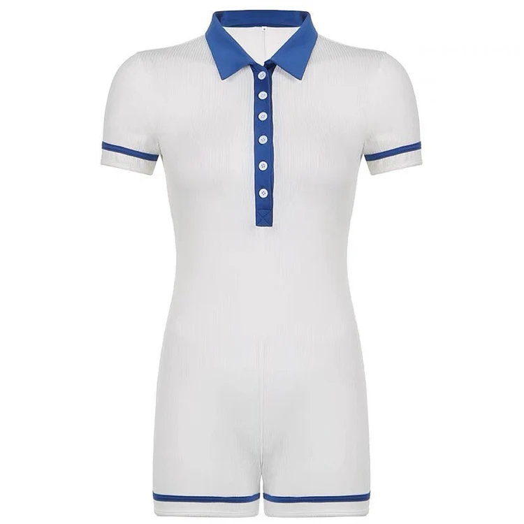 Sporty Women Short Sleeves Jumpsuit (Blue)