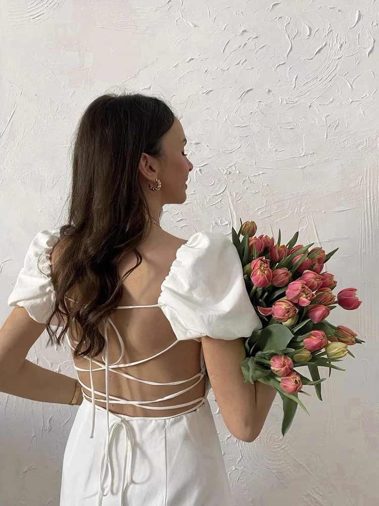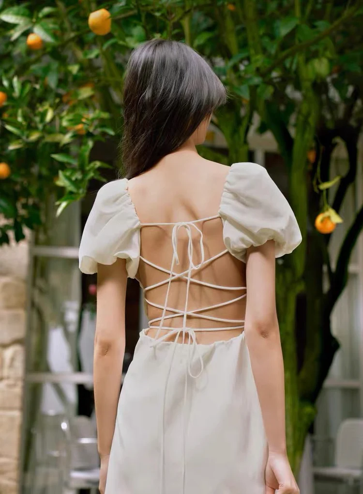 Square Neck Cotton Midi Dress