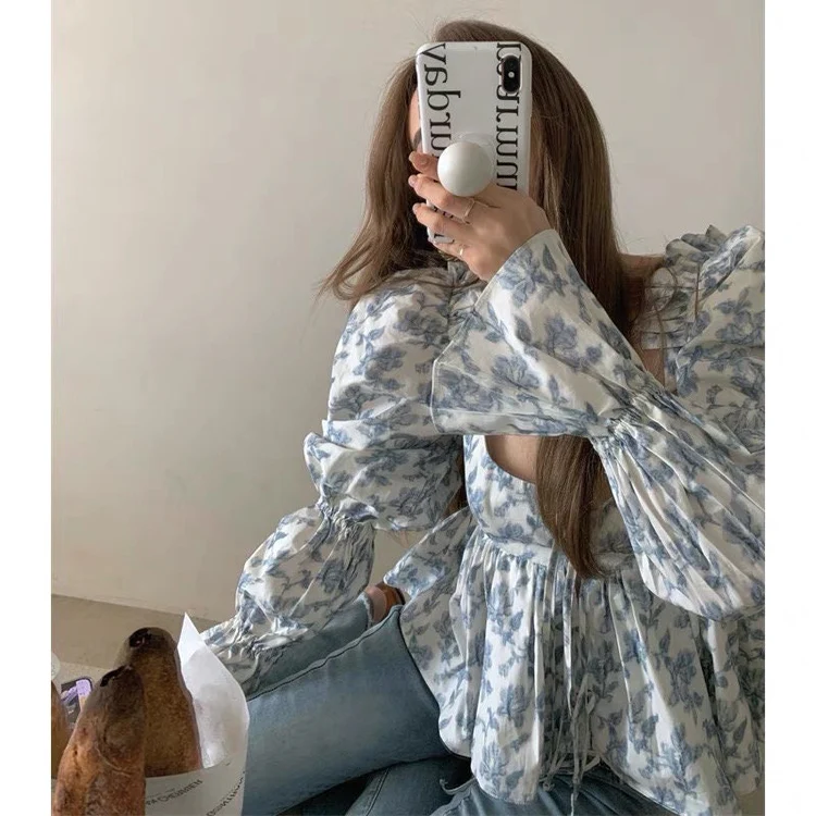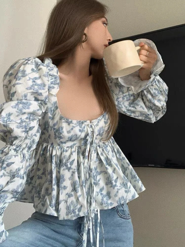 Square Neck Floral Cotton Blouse