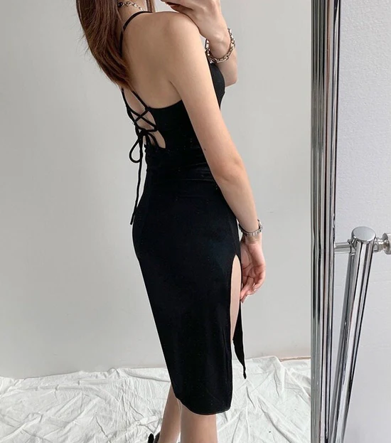 Stretchy Bodycon Cotton Split Hem Pencil Backless Dress – DAISY
