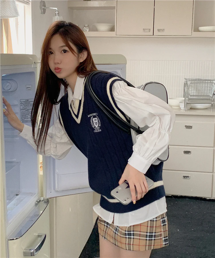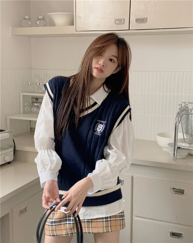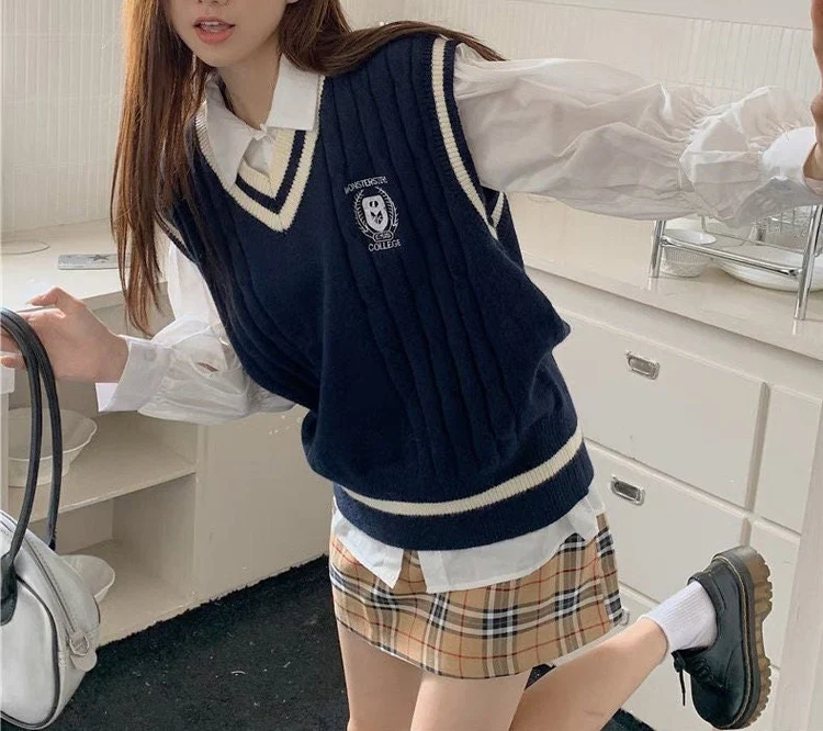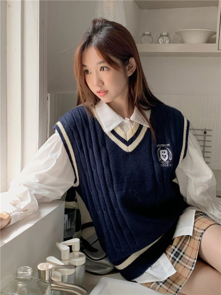 V Neck Sweater For Women – Vintage Back to School (Navy)