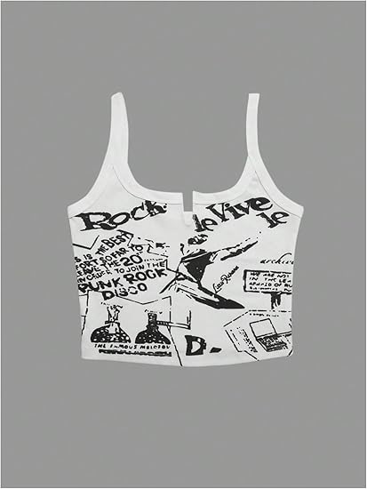 The WDIRARA Women’s Letter Print Crop Cami Top is a trendy Y2K-inspired piece that blends graphic style with a flattering fit. Featuring a notched V-neck, ruched detailing, and a slim, cropped design, it’s the perfect top to add a chic touch to any outfit.