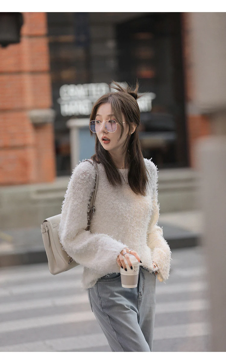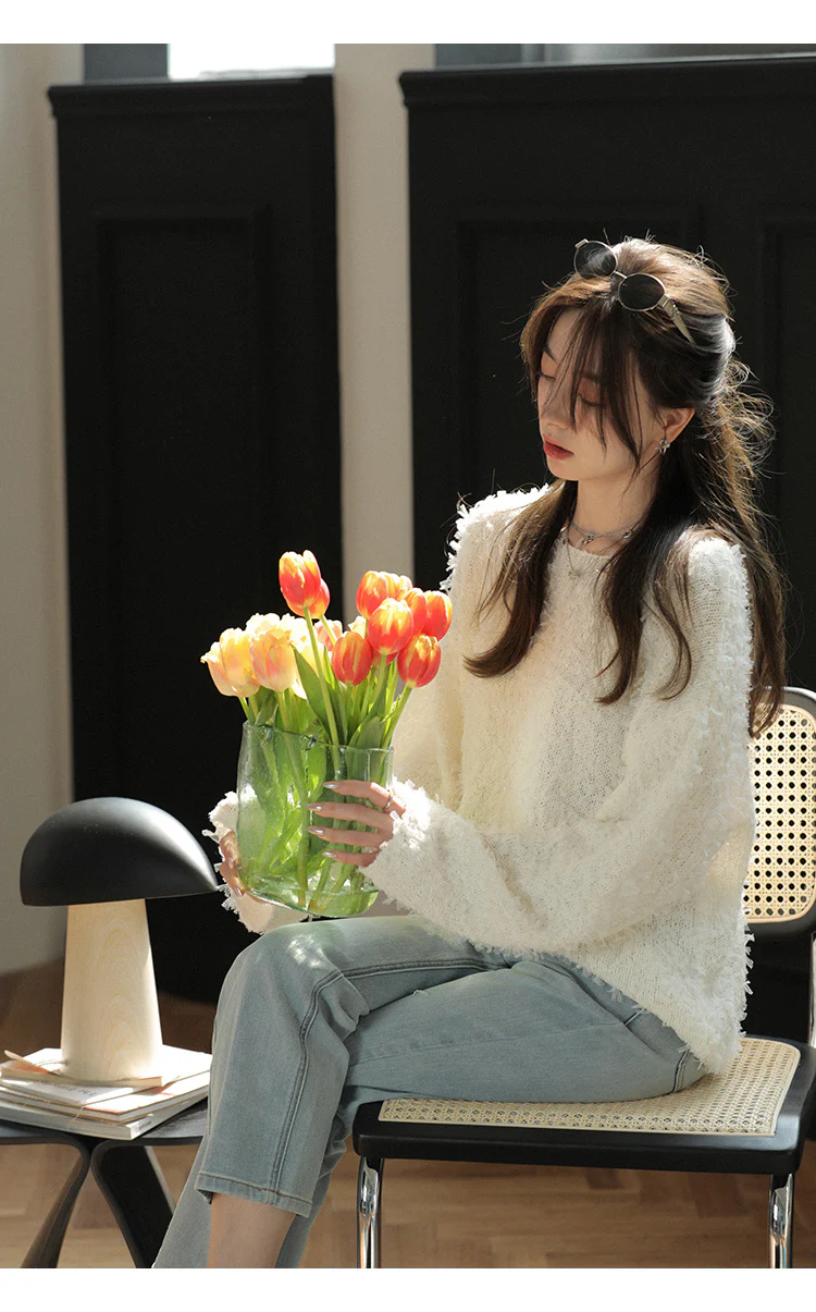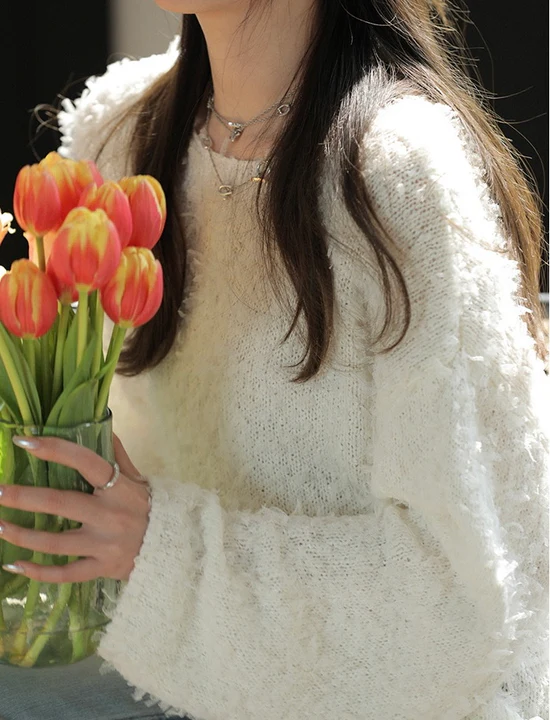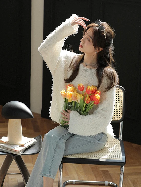 Women Elegant Round Neck Long Sleeves Jumper Top
