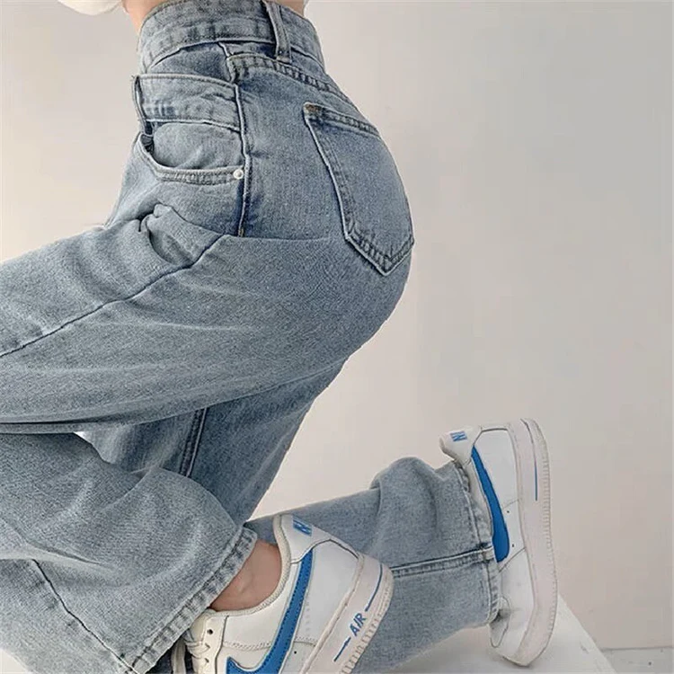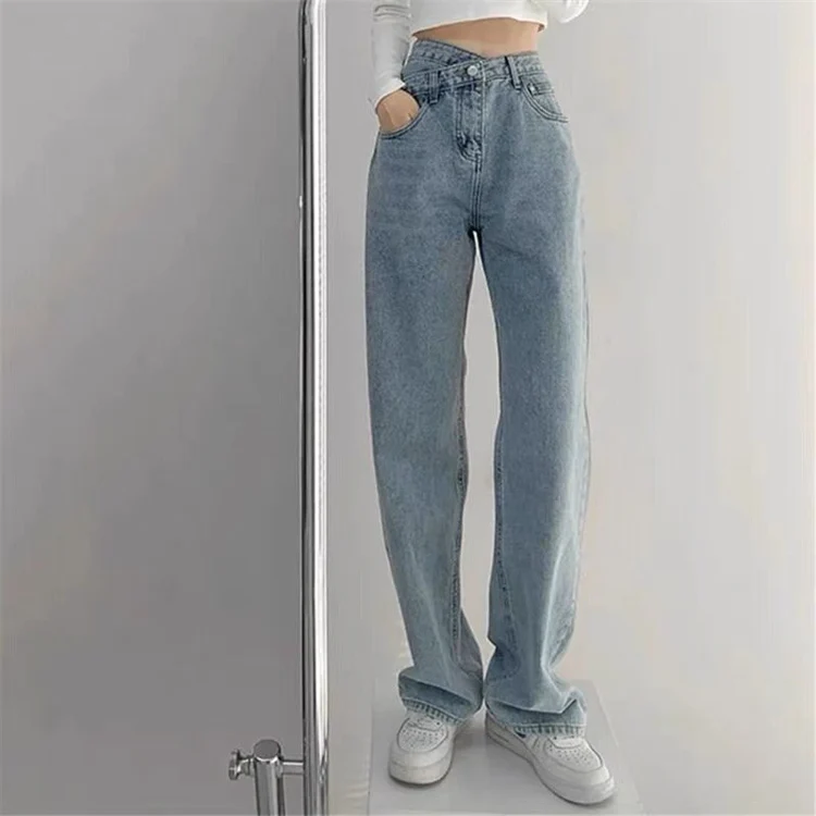 Women Streetwear Jeans Trousers Denim Pants (Light Blue)